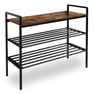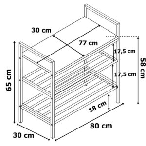 Tevea – praktyczny stojak na buty Szukasz rozwiązania na problem braku miejsca na buty? Poznaj loftowy stojak Tevea! Solidna stalowa konstrukcja w połączeniu z laminowaną płytą dębową tworzy nowoczesny design. Rustykalny wygląd dodaje autentyczności, idealnie pasując do wnętrz w stylu rustykalnym.
