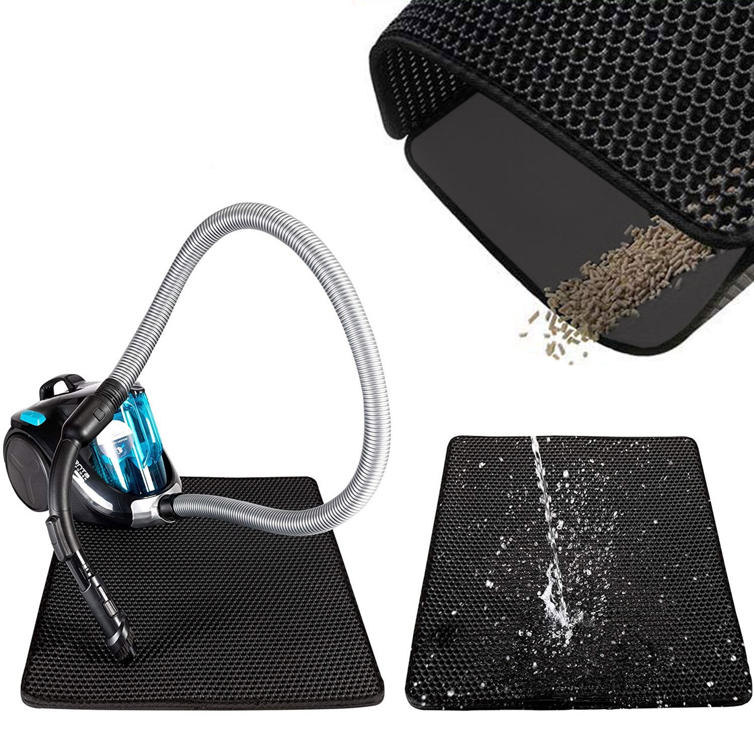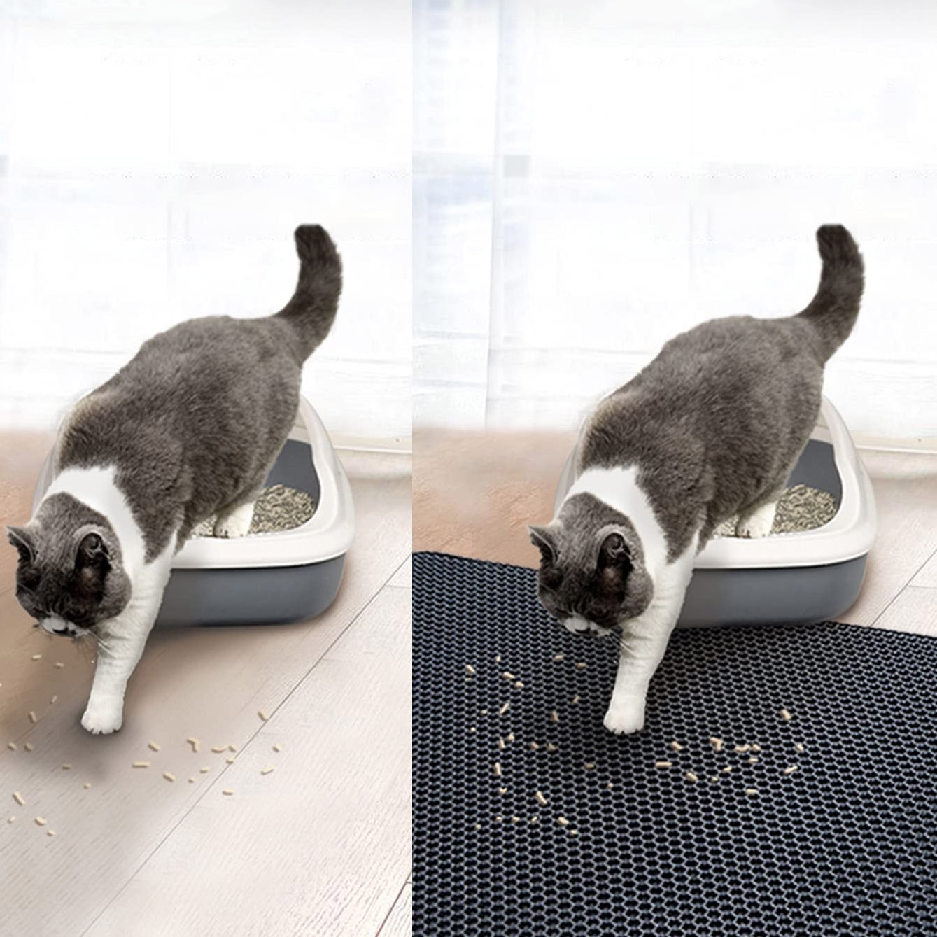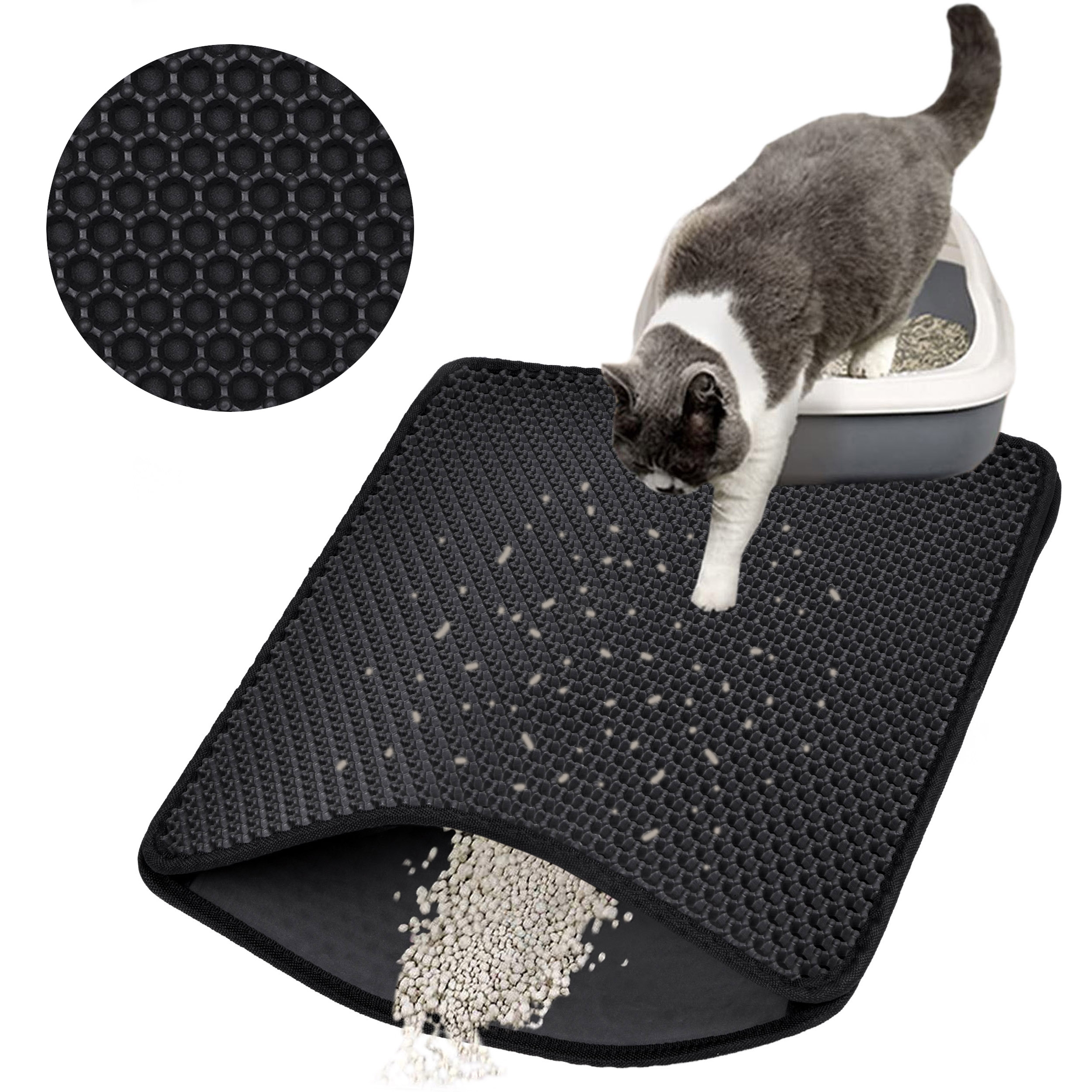Mata Catsy to niezbędne akcesorium dla właścicieli kotów. Wykonana jest z pianki EVA najwyższej jakości. Pomaga utrzymać czystość wokół kuwety, zapobiegając pozostawianiu przez kota śladów żwirku, który osypuje się z jego łapek po każdym wyjściu z kuwety. Otwory w kształcie plastrów miodu odpowiedzialne są za wyłapywanie resztek żwirku z kocich łapek, dzięki czemu Twoje mieszkanie pozostaje czyste bez konieczności codziennego sprzątania.