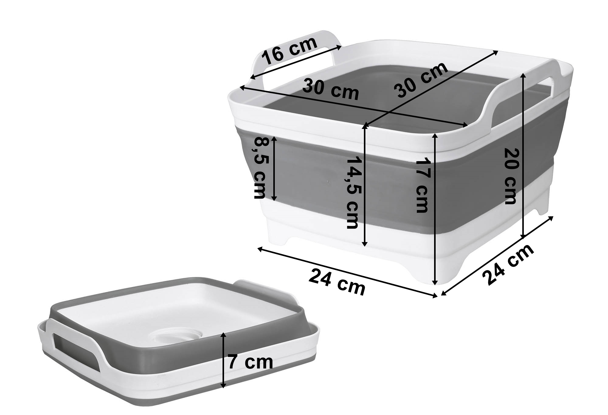Miska składana z odpływem bialo-szara COMPACT