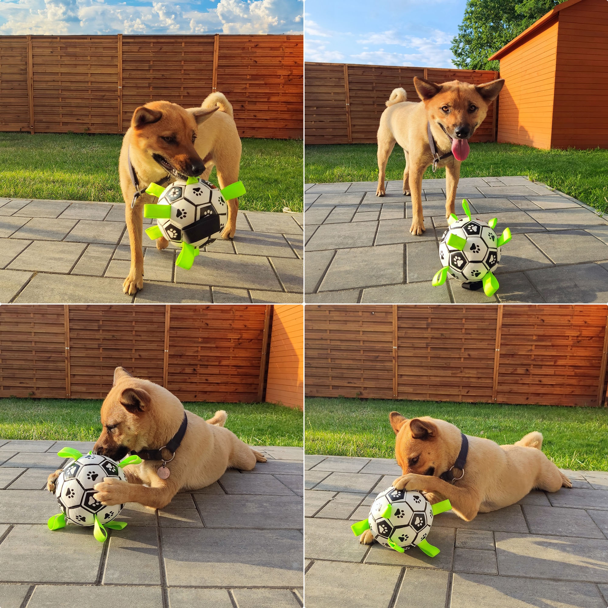 W zestawie znajdziesz kolorową piłkę z dwoma rodzajami uchwytów – jaskrawozielone uchwyty z wytrzymałego materiału, zapewniające pewny chwyt psu, oraz główny uchwyt w kolorze czarnym, dedykowany dla Ciebie. Kontrastowe kolory piłki gwarantują widoczność w każdych warunkach.