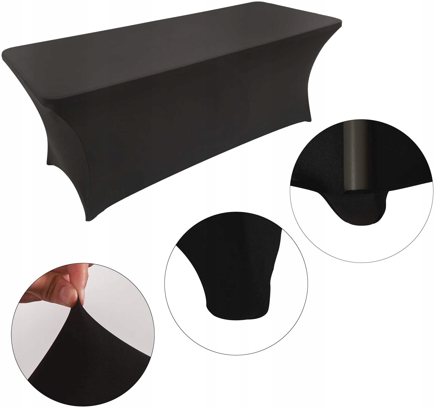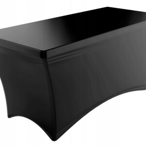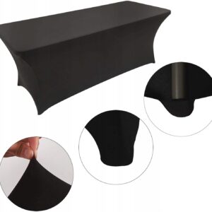 Bardzo elastyczny i elegancki pokrowiec na stół cateringowy. Wykonany z mieszanki poliestru i spandexu, co czyni go bardzo elastycznym i hydrofobowym. Pokrowiec posiada specjalne kieszonki na nogi stołu, dzięki czemu nie ześlizguje się i dokładnie, w całości przykrywa stół. Idealny na wszelkiego rodzaju imprezy okolicznościowe. Dzięki dopasowanemu kształowi zapobiega przypadkowemu ściągnięciu tego, co na stole. Materiał gładki, można prać w pralce w 30 stopniach.