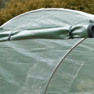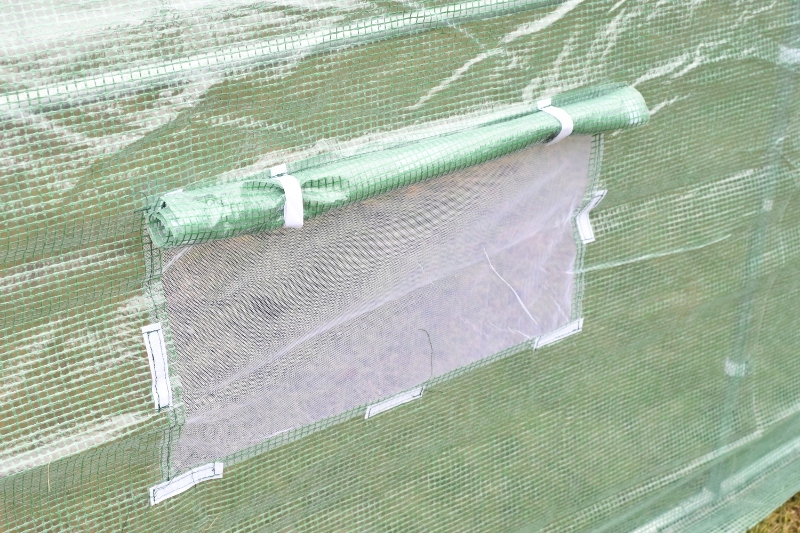 Dzięki siatce wtopionej w folię, powłoka jest odporna na rozerwania. Uszkodzenie folii nie powoduje jej dalszego rozrywania. Tunel wyposażony został w zamykane okna z moskitierą na bocznych ściankach. Okna pozwalają na przepływ powietrza oraz uzyskanie odpowiedniej wilgotności wewnątrz. Fartuch ziemny na bocznych brzegach folii można obsypać ziemią lub obciążyć kamieniami. Tunel dzięki temu zyska dodatkową stabilność, a także będzie chroniony przed podwianiem folii. Model posiada dodatkowe odciągi, które pozwalają na lepsze naprężenie pokrycia tunelu. Rolowane drzwi otwierane są za pomocą solidnych zamków błyskawicznych.