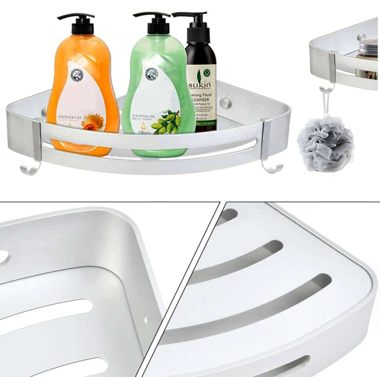 Półka łazienkowa Adena została wykonana z aluminium najwyższej jakości z zachowaniem dbałości o najmniejsze detale. Półka jest gładka, ma zaokrąglone krawędzie i wykończona jest na kolor srebrnego matu. Dodatkowe haczyki ułatwiają korzystanie z myjek i gąbek. Srebrny kolor sprawia, że doskonale sprawdzi się w każdej łazience. Idealnie pasuje do stylu nowoczesnego.
