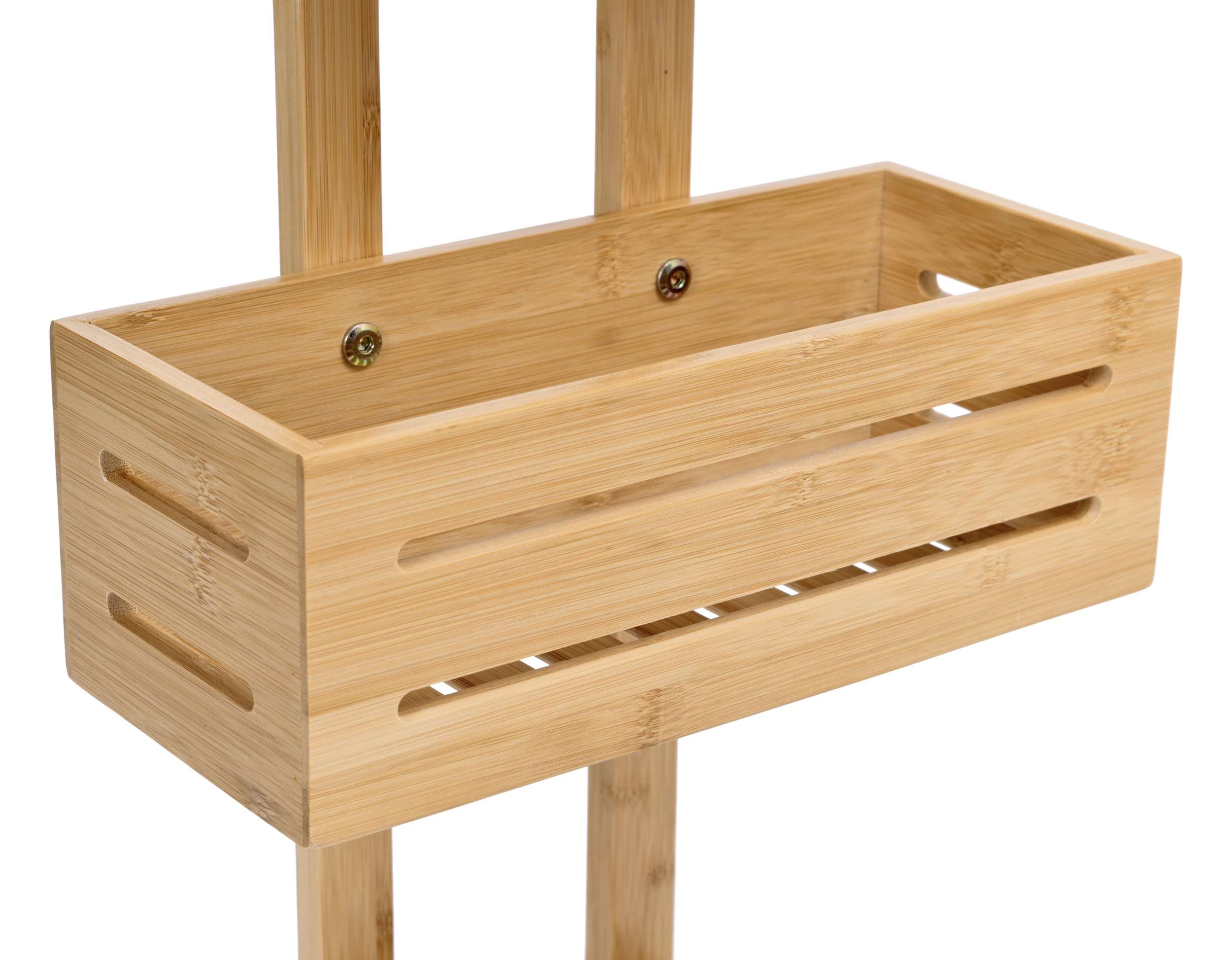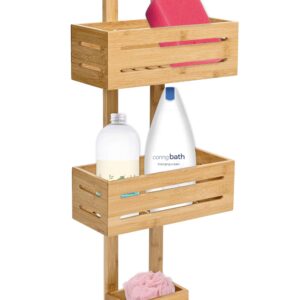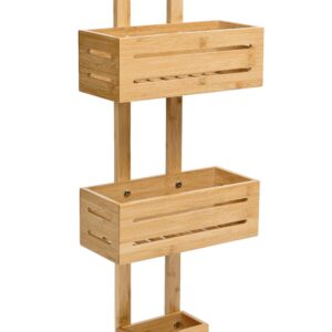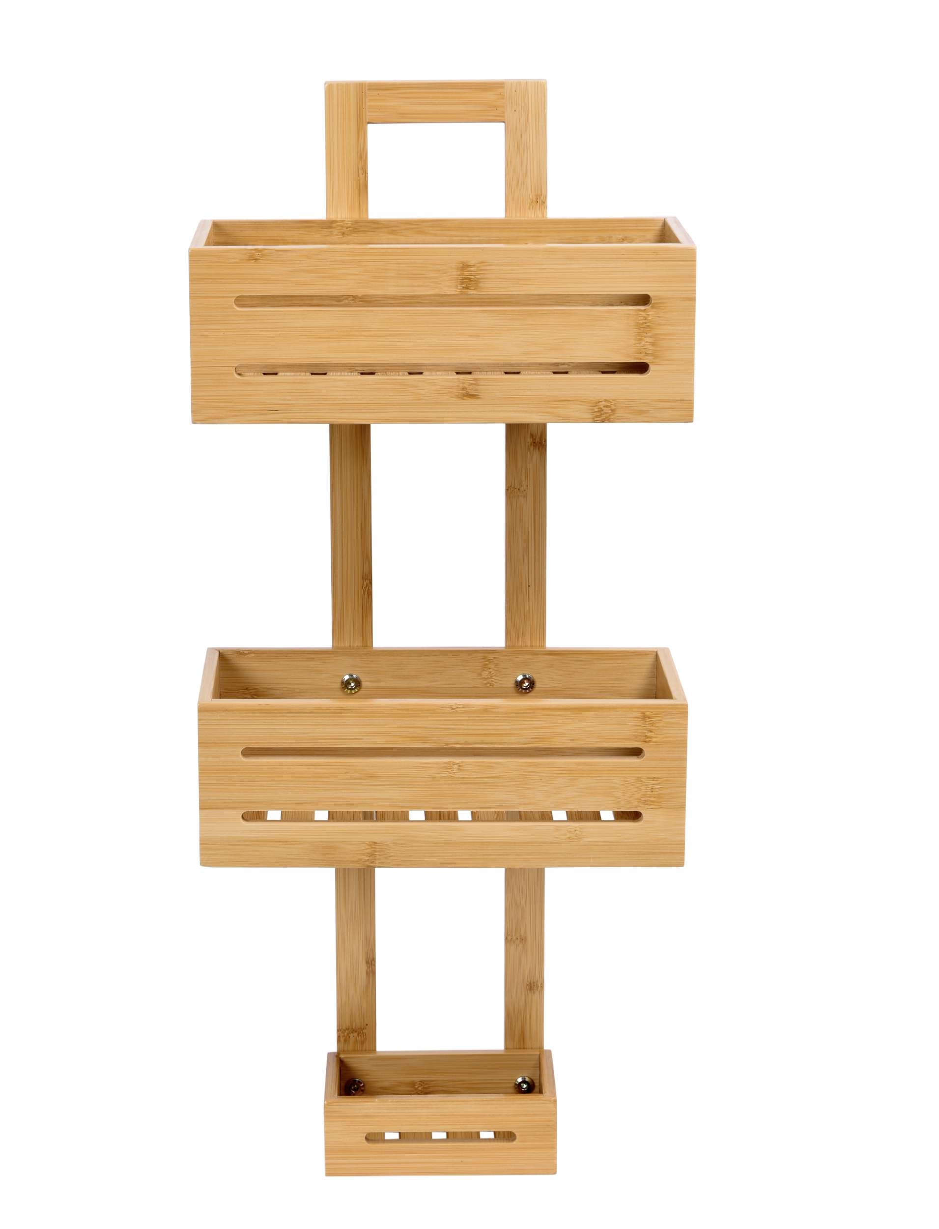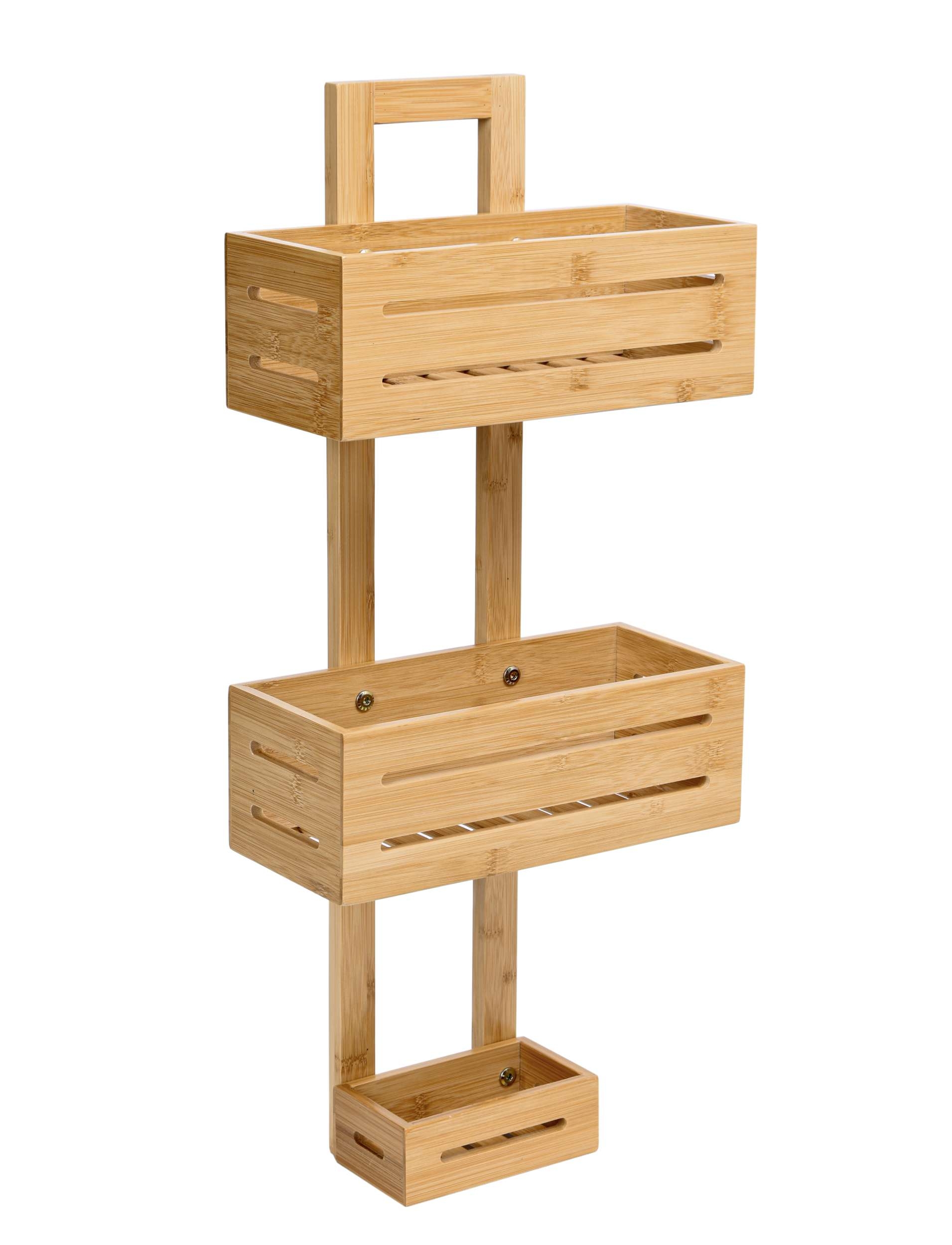 Dzięki wiszącej półce Manila wykonanej z bambusa stworzysz przestrzeń do przechowywania w swojej łazience. Półka prysznicowa posiada łącznie 3 kosze. Dwie górne mają miejsce na szampon, żel pod prysznic i inne większe butelki. Dolna komora jest mniejsza i nadaje się na mydło lub maszynki do golenia. Półka zapewni komfort podczas kąpieli. Dzięki trzem półkom masz wszystko pod ręką. Wystarczy zawiesić ją na haczyku lub dwóch śrubach. Naturalny bambus ładnie dopasuje się do Twojego wnętrza.