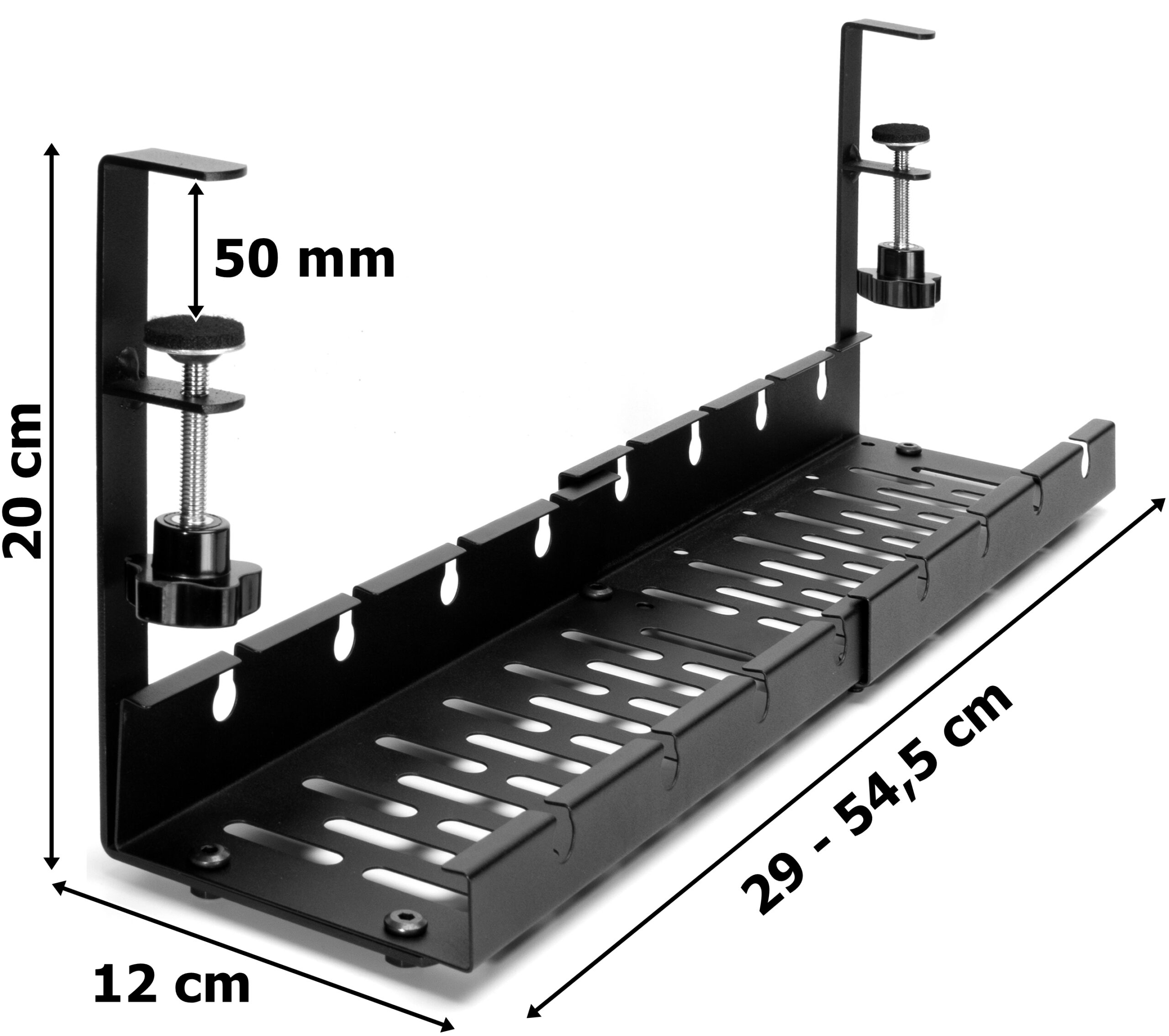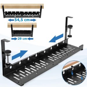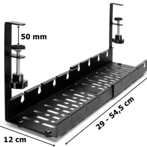 ✅Regulowana szerokość dla optymalnej organizacji – Jedną z głównych zalet półki jest jej regulowana szerokość, która umożliwia dopasowanie w zakresie od 29 do 54,5 cm. Dzięki temu pasuje ona do większości biurek i pozwala na elastyczne zarządzanie przestrzenią pod biurkiem.