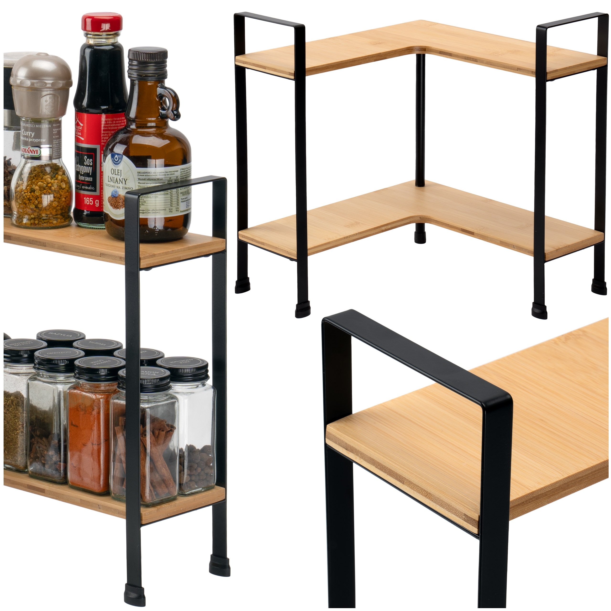 ✅ Praktyczność i wygoda: Dwie przestronne półki umożliwiają wygodne przechowywanie różnorodnych przypraw i akcesoriów kuchennych.