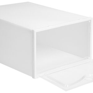 Zestaw 10 składanych pudełek na buty OSLO to idealne rozwiązanie dla osób ceniących porządek i funkcjonalność w garderobie. Każde pudełko posiada przezroczystą klapkę z otworem, która pełni rolę okienka, ułatwiając szybkie odnalezienie odpowiedniej pary butów. Wykonane z lekkiego i trwałego tworzywa PP, pudełka są łatwe w transporcie. Solidna przednia ramka z dwoma haczykami umożliwia modułowe układanie pudełek, tworząc estetyczną i zorganizowaną przestrzeń. Dodatkowe wycięcia pełniące rolę haczyków zapewniają możliwość łączenia pudełek i ich lepszą stabilność, co sprawia, że jest to doskonałe rozwiązanie do przechowywania obuwia w małych i dużych przestrzeniach, takich jak korytarz czy garderoba.