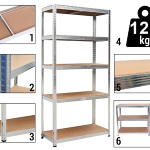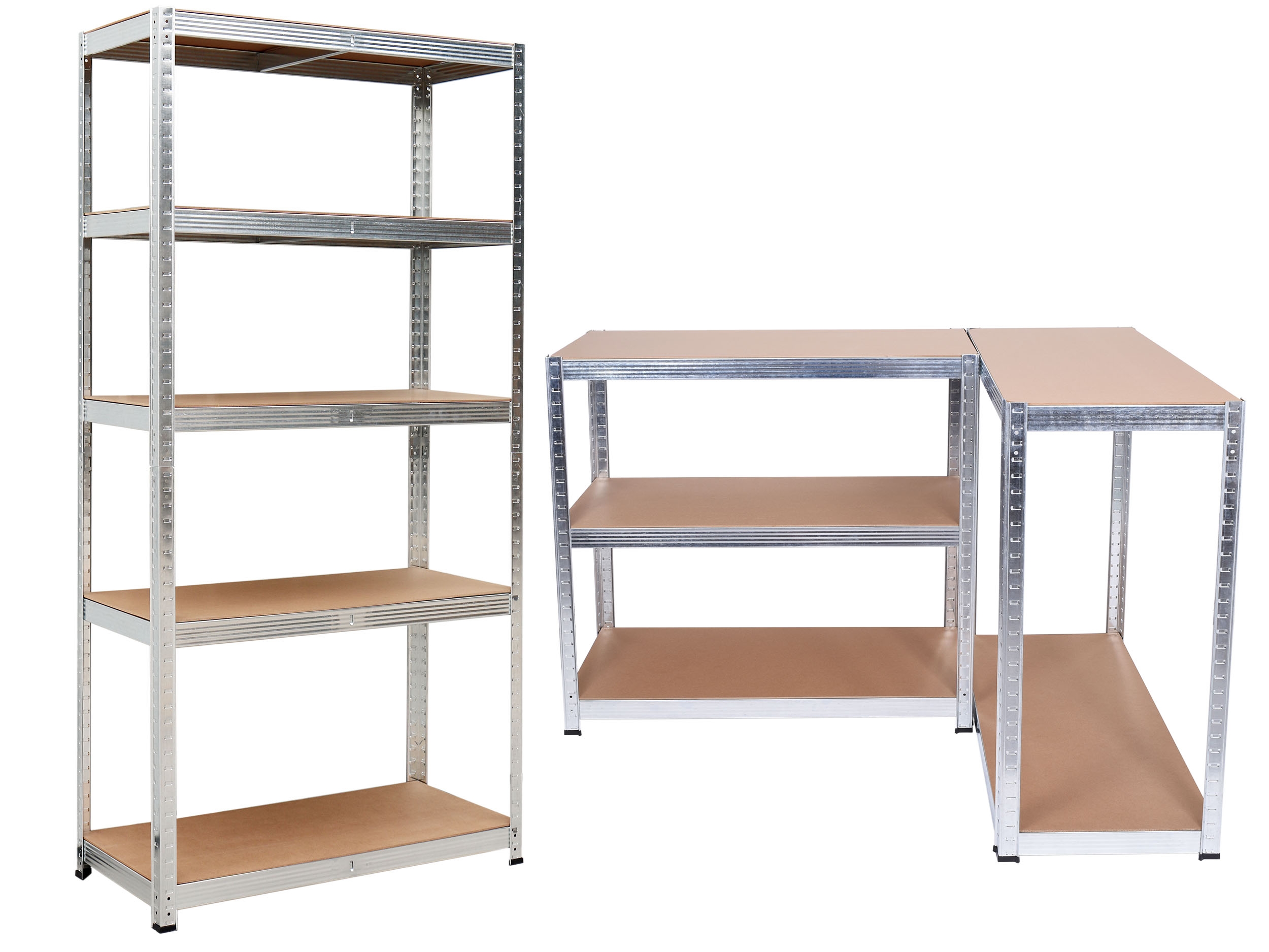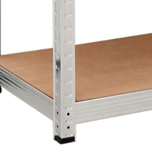 Regały magazynowe to świetne rozwiązanie do utrzymania porządku w piwnicach, garażach, magazynach czy sklepach. Zostały wykonane z wysokiej jakości materiałów takich jak: ocynkowana stal oraz płyty MDF. Solidne półki o maksymalnym obciążeniu 125 kg każda dają gwarancję stabilności i wytrzymałości. Montaż bezśrubowy sprawia, że złożenie regału jest proste i nie zajmuje wiele czasu. By sprawniej złożyć ramę i ułatwić sobie pracę można użyć gumowego młotka i płaskiego śrubokręta. Regał pozwala nam na dowolną konfigurację półek – otwory rozmieszczone są na całej długości nóg. Można go także np. podzielić na dwa mniejsze regały lub stoły warsztatowe. Nogi regału zabezpieczono nakładkami z tworzywa. Całkowite obciążenie regału to aż 625 kg!