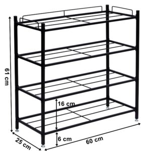 Regał na buty Viena wykonany jest z materiałów najwyższej jakości. Cztery poziomy regału pomieszczą wiele par obuwia. Stelaż wykonano ze stali malowanej proszkowo, co zapewnia wytrzymałość i stabilność.
