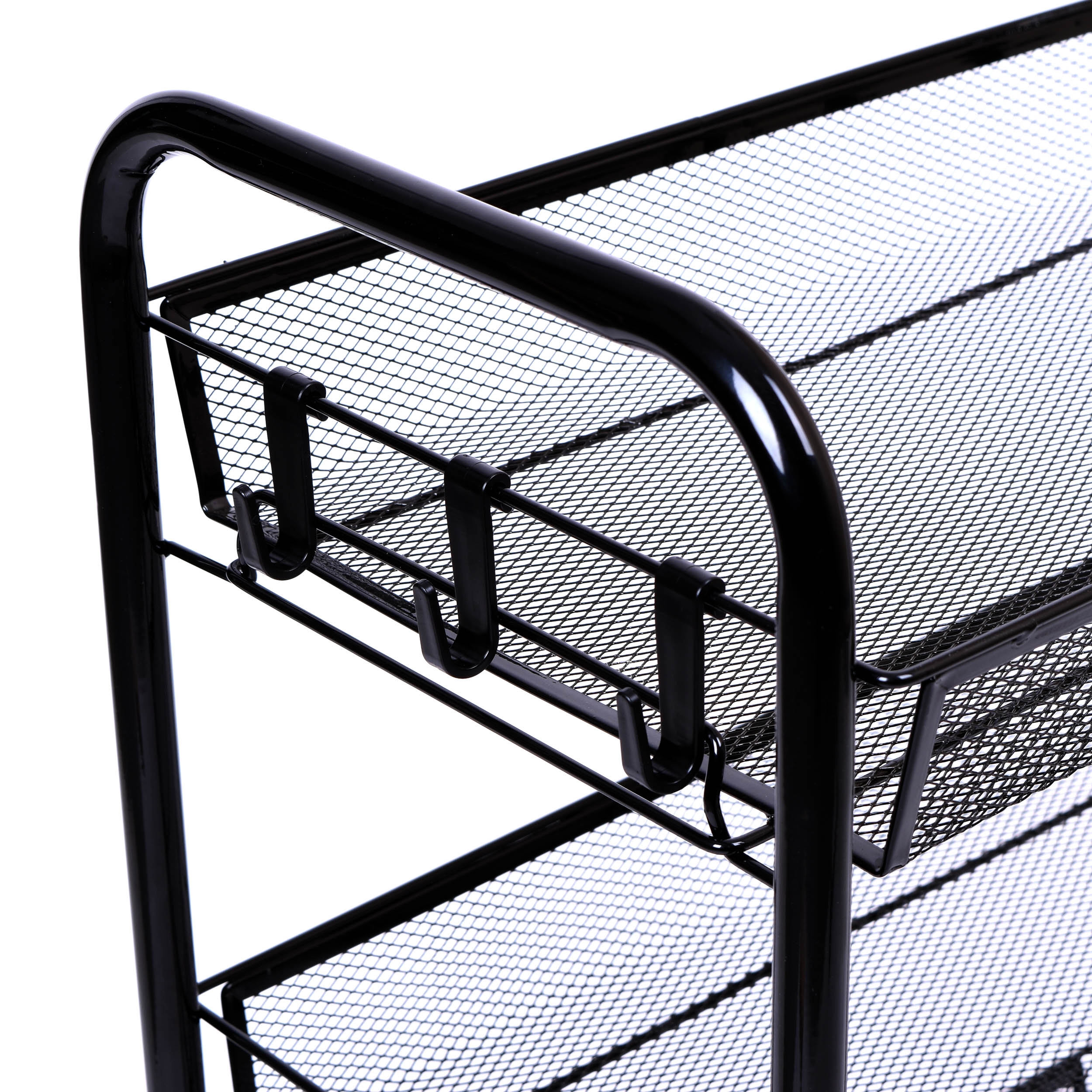 Halsen to wielozadaniowy regał, który sprawdzi się w każdych warunkach. Idealny do kuchni, łazienki, salonu czy sypialni. Jego przemyślana konstrukcja pozwala zagospodarować wąskie przestrzenie i ułatwia dostęp do najpotrzebniejszych rzeczy. Model wyposażony w 3 półki, które z pewnością pomieszczą mnóstwo niezbędnych akcesoriów. Regał ma 4 kółka w tym 2 posiadające blokadę z hamulcem. W zestawie 5 haczyków do zawieszania np. ścierek kuchennych. Można je montować po lewej i po prawej stronie na każdym poziomie wg uznania. Halsen wykonany jest z materiałów najwyższej jakości. Konstrukcja ze stali malowanej proszkowo na czarny błyszczący kolor.