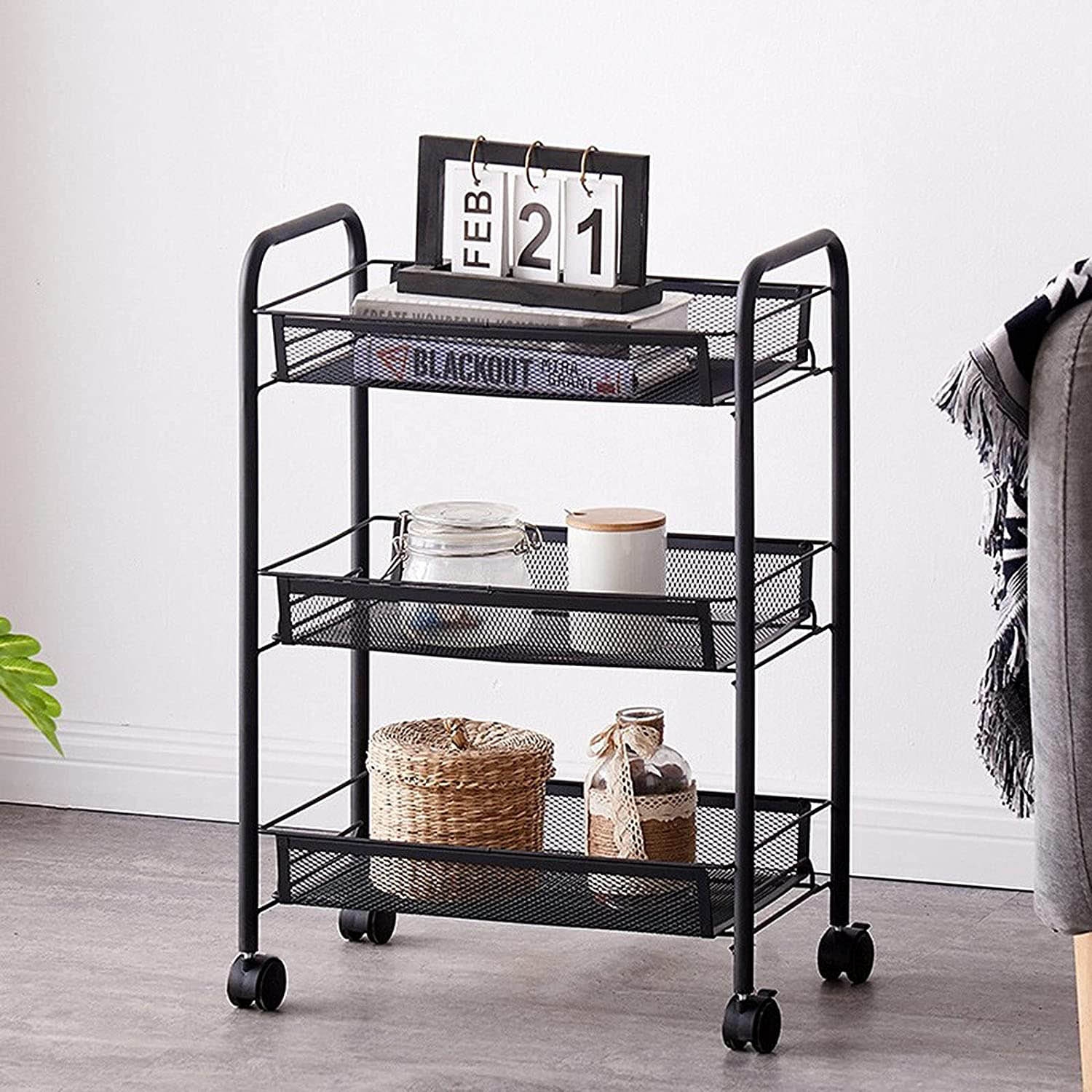 Regał na kółkach 3 poziomy HALSEN czarny
