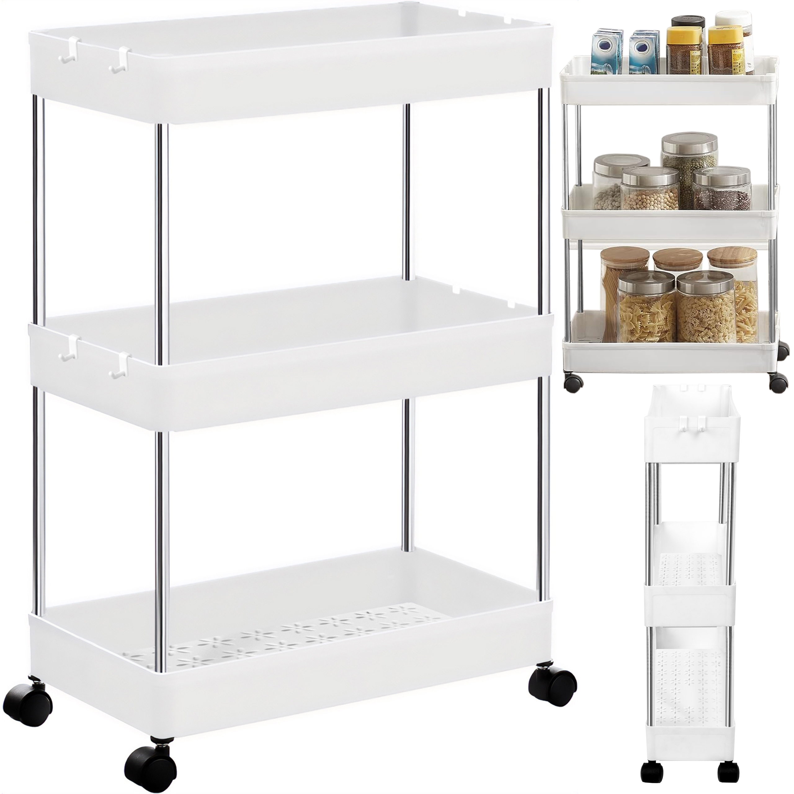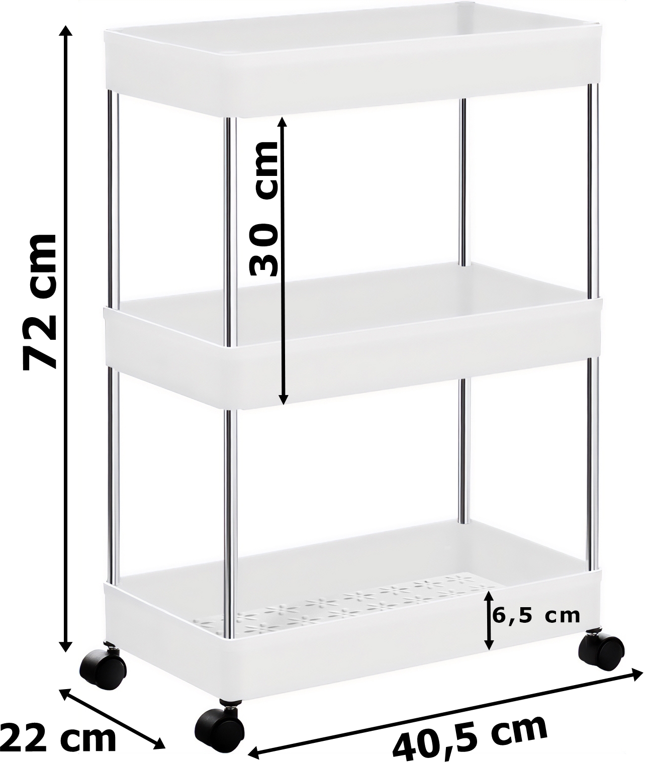 Regał na kółkach TALMER biały 3 poziomy