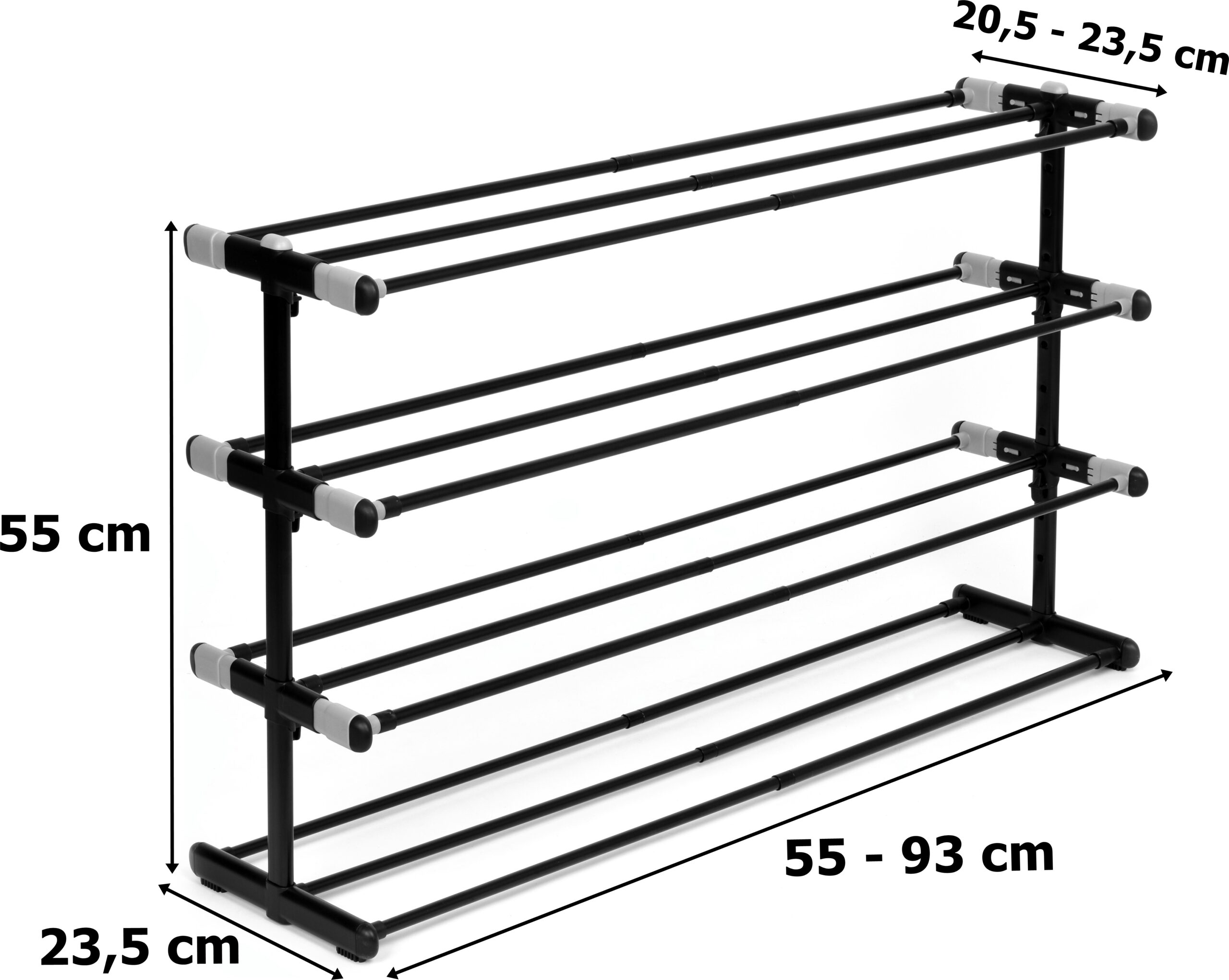 Praktyczny i lekki stojak na buty Diana to idealne rozwiązanie dla osób, które wynajmują mieszkanie lub potrzebują niedrogo uporządkować przestrzeń. Regulowana wysokość oraz szerokość półki na buty pozwala dopasować ją do swoich potrzeb w każdej chwili. Maksymalnie rozłożony stojak pozwala pomieścić aż 16 par butów! Diana to bardzo funkcjonalny regał na buty. Wpasuje się idealnie w każde wnętrze. Jest trwały i łatwo utrzymać go w czystości.