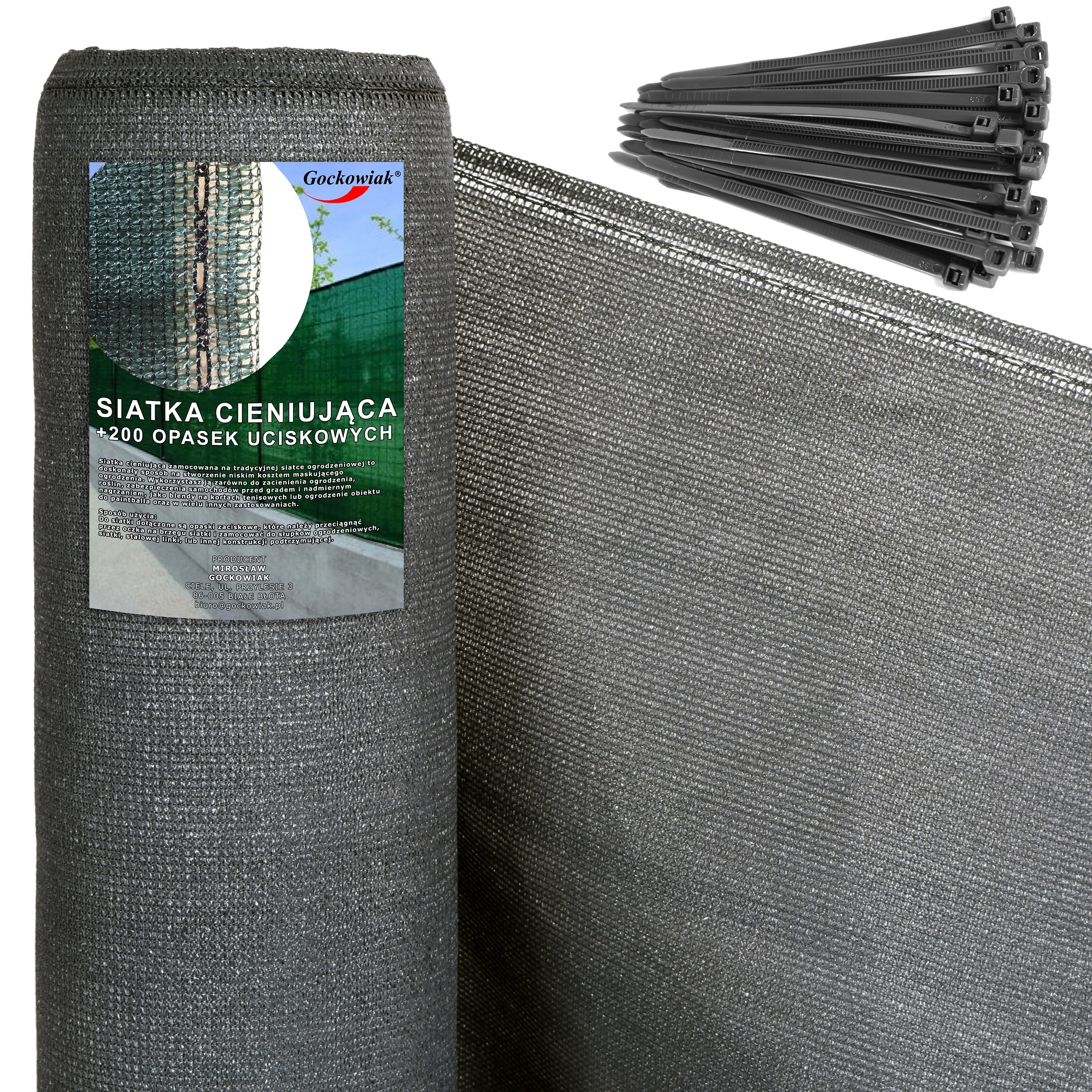 Siatka cieniująca to doskonały sposób na stworzenie niskim kosztem maskującego ogrodzenia. Jej głównym zadaniem jest ograniczenie widoczności i dostępu światła przy jednoczesnym zachowaniu pr awidłowej wentylacji. Siatka gęsto pleciona, wykonana z najwyższej jakości materiałów HDPE i PP. Posiada filtr UV, który wzmacnia i wydłuża jej żywotność. Redukuje aż 90% światła słonecznego. Wersja ze wzmocnieniami w postaci przeszyć polipropylenowych blisko oczek montażowych. W zestawie 100 sztuk opasek zaciskowych. Siatka złożona jest do kompaktowych wymiarów na czas transportu.