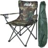 Krzesełko posiada praktyczny pokrowiec z uchwytem, dzięki czemu można je łatwo przenosić w dowolne miejsce. Poręczna kieszonka na kubek, puszkę i inne drobne przedmioty umożliwia łatwy dostęp do nich podczas siedzenia. Podwójne szwy i solidne, metalowe rurki zapewniają wytrzymałość i bezpieczeństwo podczas użytkowania.