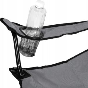 Krzesełko posiada praktyczny pokrowiec z uchwytem, dzięki czemu można je łatwo przenosić w dowolne miejsce. Poręczna kieszonka na kubek, puszkę i inne drobne przedmioty umożliwia łatwy dostęp do nich podczas siedzenia. Podwójne szwy i solidne, metalowe rurki zapewniają wytrzymałość i bezpieczeństwo podczas użytkowania.