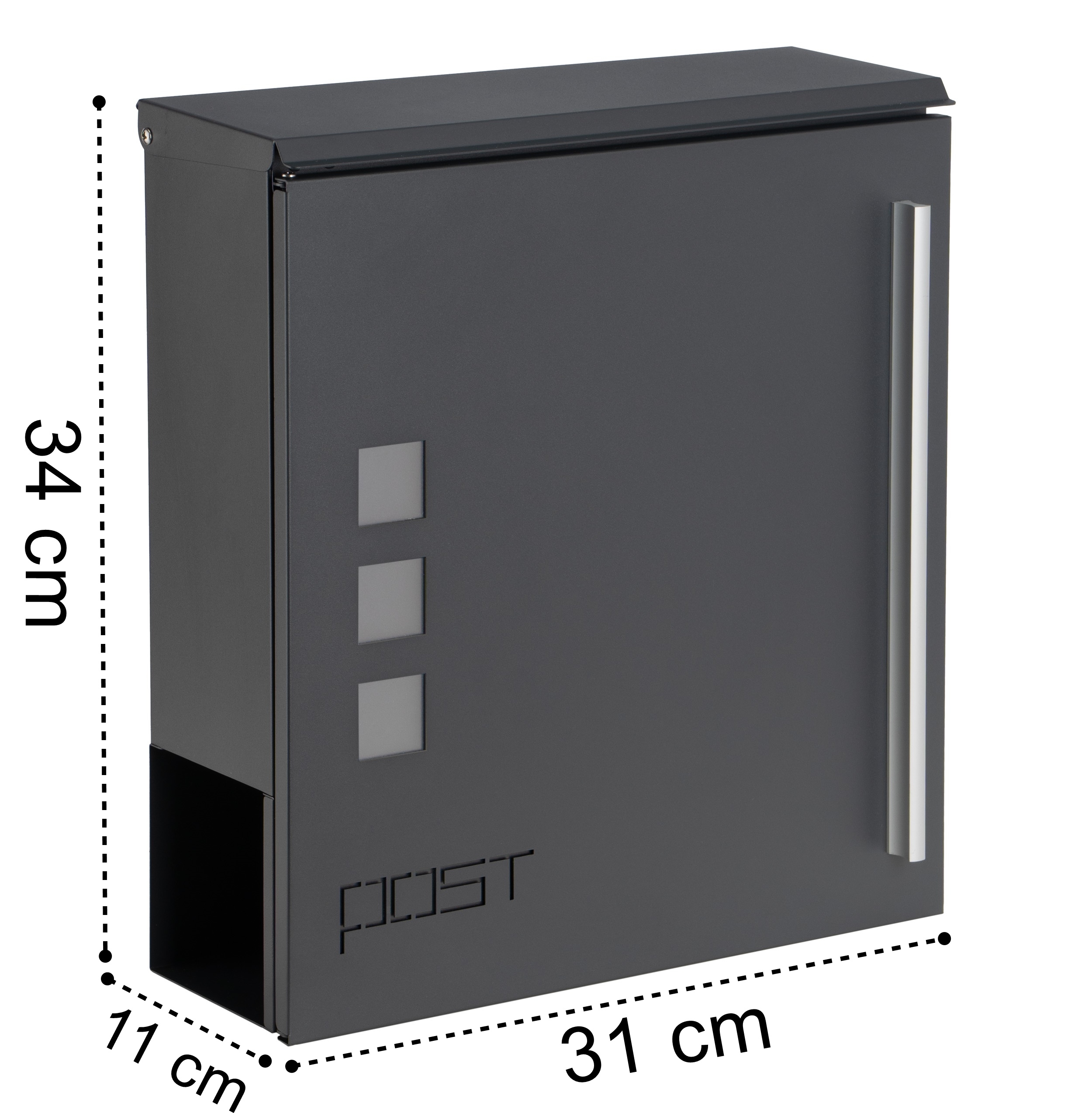 Skrzynka na listy Miluz łączy w sobie elegancję, solidność i funkcjonalność. Wykonana z galwanizowanej stali, nie tylko świetnie się prezentuje, ale także wykazuje odporność na zmienne warunki pogodowe. Skrzynka oferuje wygodną przegrodę na gazety i ulotki, a listy wrzucane są przez otwór osłonięty uchylną klapą, która dodatkowo chroni korespondencję. Dzięki zamkowi na klucz Twoje listy i dokumenty są zawsze bezpieczne. Ponadto, okienka do podglądu zawartości umożliwiają szybkie sprawdzenie, czy masz nową pocztę. Skrzynka jest łatwa do zamontowania, dzięki dołączonemu zestawowi montażowemu.