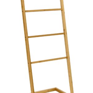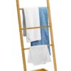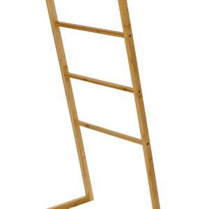 Modny stojak na ręczniki wykonany z naturalnego bambusa. Idealny do łazienki, pomieści cztery ręczniki lub komplet ubrań. Estetycznie wykonany. Lakierowany w celu zwiększenia odporności na wilgoć.