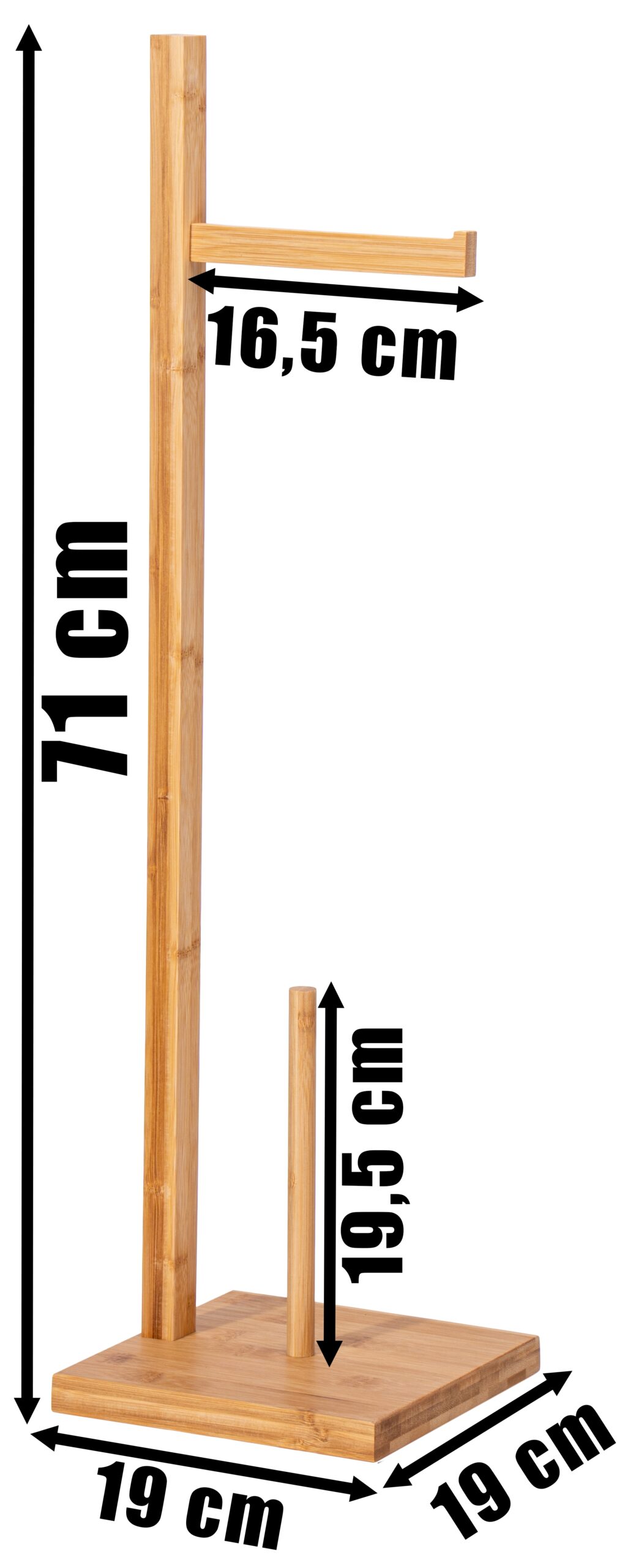 ✅Zwiększenie przestrzeni – dzięki swoim kompaktowym wymiarom (71 cm wysokości, podstawa 19×19 cm) stojak jest idealny nawet dla mniejszych łazienek, maksymalizując przestrzeń bez poświęcania funkcjonalności.