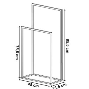 Gesi to wolnostojący praktyczny wieszak na ręczniki. Wykonany z najwyższej jakości stali malowanej proszkowo i wykończony na matowy biały kolor. Ma aż 2 ramiona na różnych wysokościach, co ułatwia zakładanie i ściąganie ręczników. Ramowa konstrukcja w kształcie litery U zapewnia szybsze i dokładniejsze suszenie ręczników oraz oszczędność miejsca. Stojak jest stabilny, a zarazem lekki. Bez problemu przeniesiemy go w wybrane miejsce. Podstawa stojaka zabezpieczona jest ochronnymi stopkami, które zapobiegają rysowaniu się podłogi. Jest doskonałym uzupełnieniem każdej łazienki. Oprócz walorów praktycznych stanowi ciekawą ozdobę pomieszczenia, wobec której nie można przejść obojętnie. Idealnie wkomponuje się we wnętrza w stylu boho, skandynawskim, nowoczesnym.