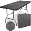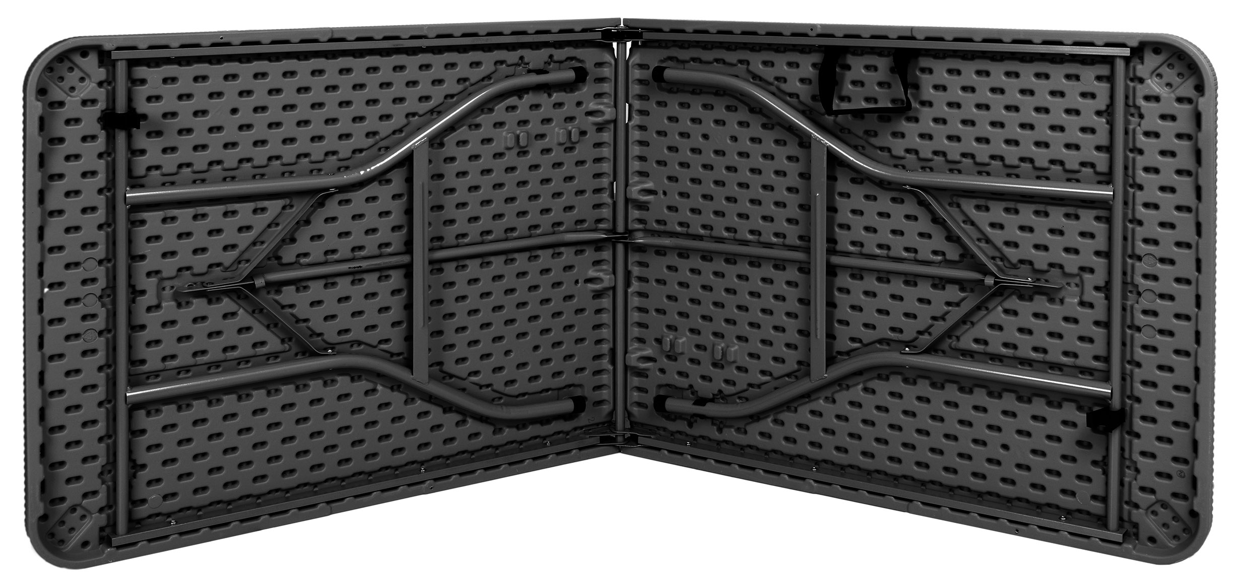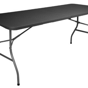 Składany stół cateringowy. Bardzo praktyczny i lekki. Konstrukcja wykonana ze stali malowanej proszkowo. Blat wykonany z polietylenu HDPE. Wzorowany na rattan. Odporny na promienie słoneczne. Dzięki unikalnemu projektowi całość konstrukcji chowa się w blat stołu, zajmując mało miejsca i tworząc ergonomiczną walizkę, łatwą do przenoszenia. Jego rozmiar pozwala ugościć nawet do 12 osób. Stół składany Rattan to stół o uniwersalnym zastosowaniu. Z powodzeniem spełni funkcję stołu cateringowego, handlowego czy ogrodowego. Dzięki odpowiednio grubemu blatu sprawdzi się w każdych warunkach.