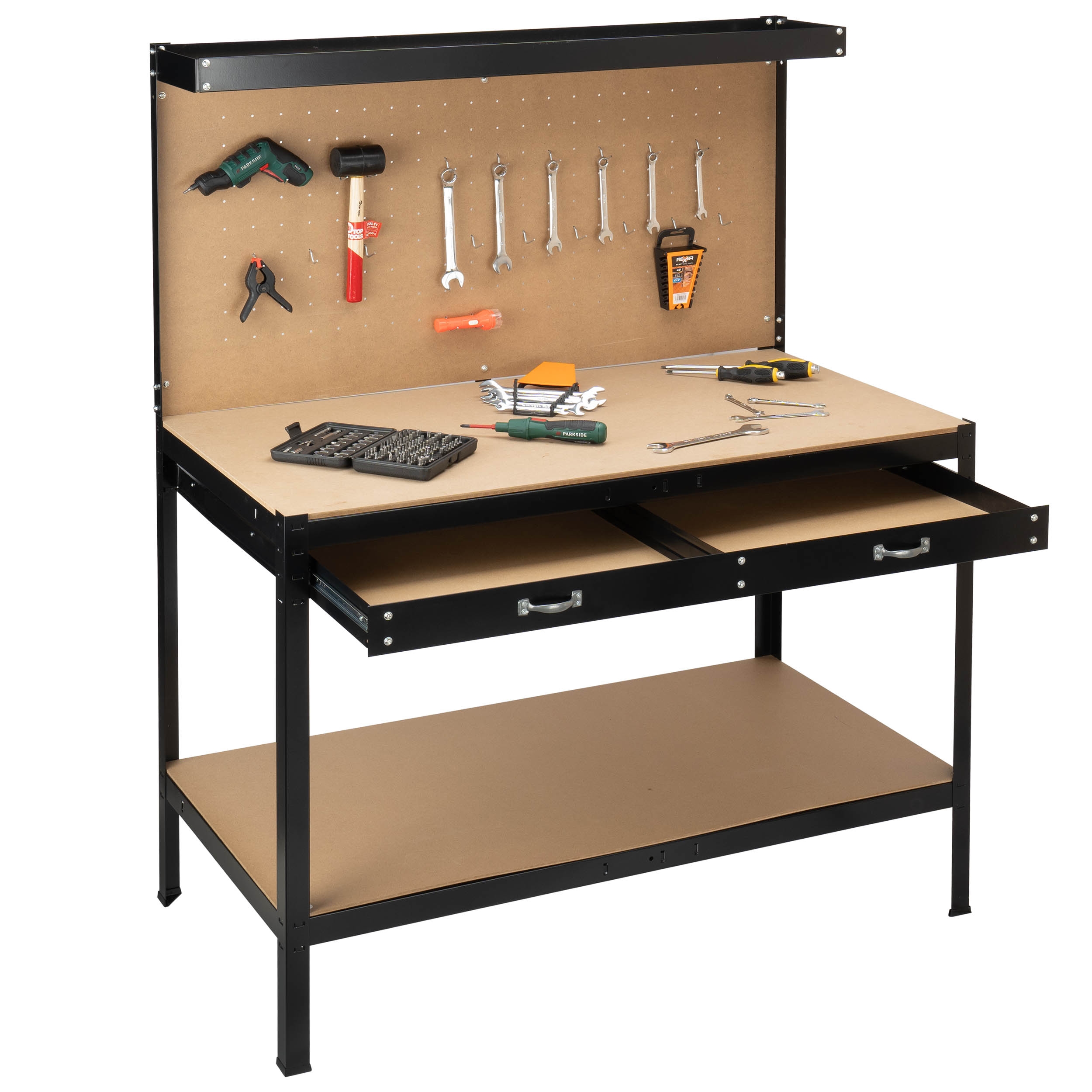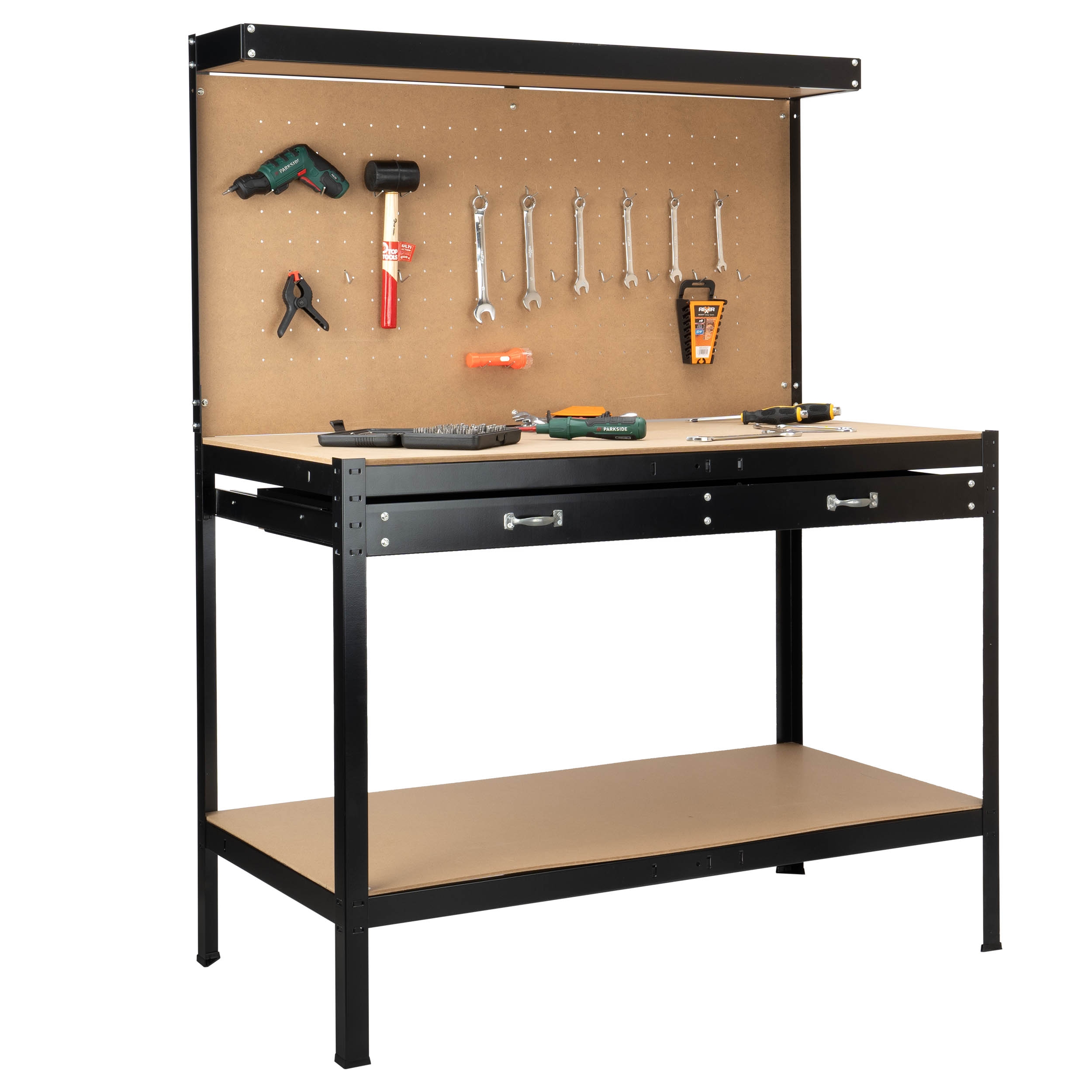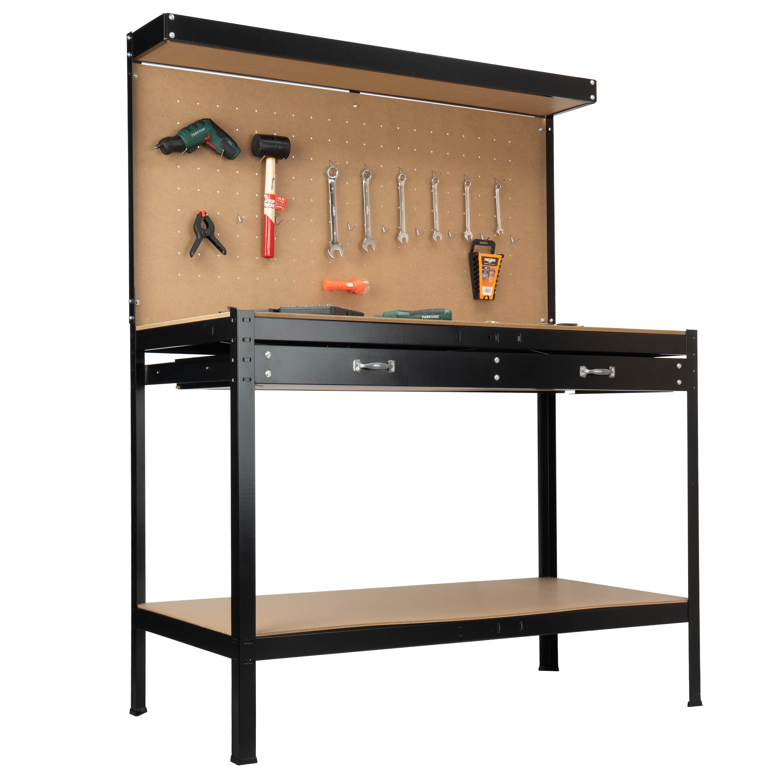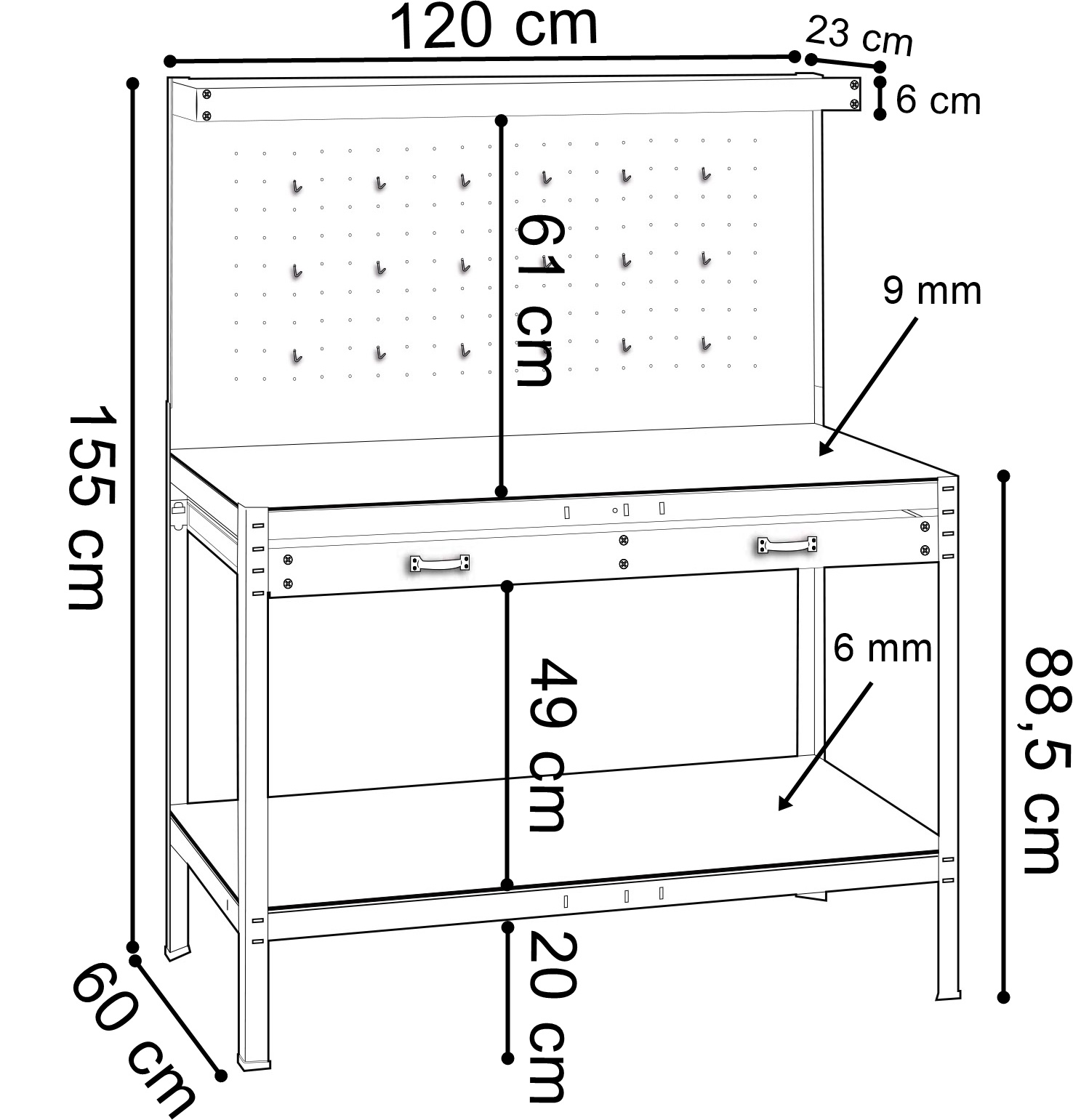Warsztatowy stół Horten to wytrzymały, funkcjonalny i ergonomiczny mebel, idealny dla każdego majsterkowicza i hobbysty DIY. Dostępny w najniższej cenie bezpośrednio od producenta. Stół wykonano z proszkowo malowanej stali oraz grubych płyt MDF, co gwarantuje jego trwałość, solidność i długowieczność. Kluczowe elementy tego stołu warsztatowego, takie jak wzmocniona konstrukcja, przestronne szuflady na narzędzia, perforowana tablica narzędziowa, blat roboczy oraz uchwyty na narzędzia, zapewniają komfort i doskonałą organizację pracy w każdym warsztacie. To niezbędny element wyposażenia dla każdego, kto potrzebuje praktycznego i niezawodnego stołu roboczego.
