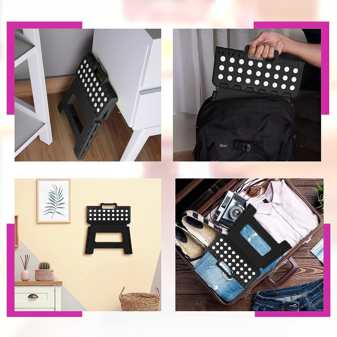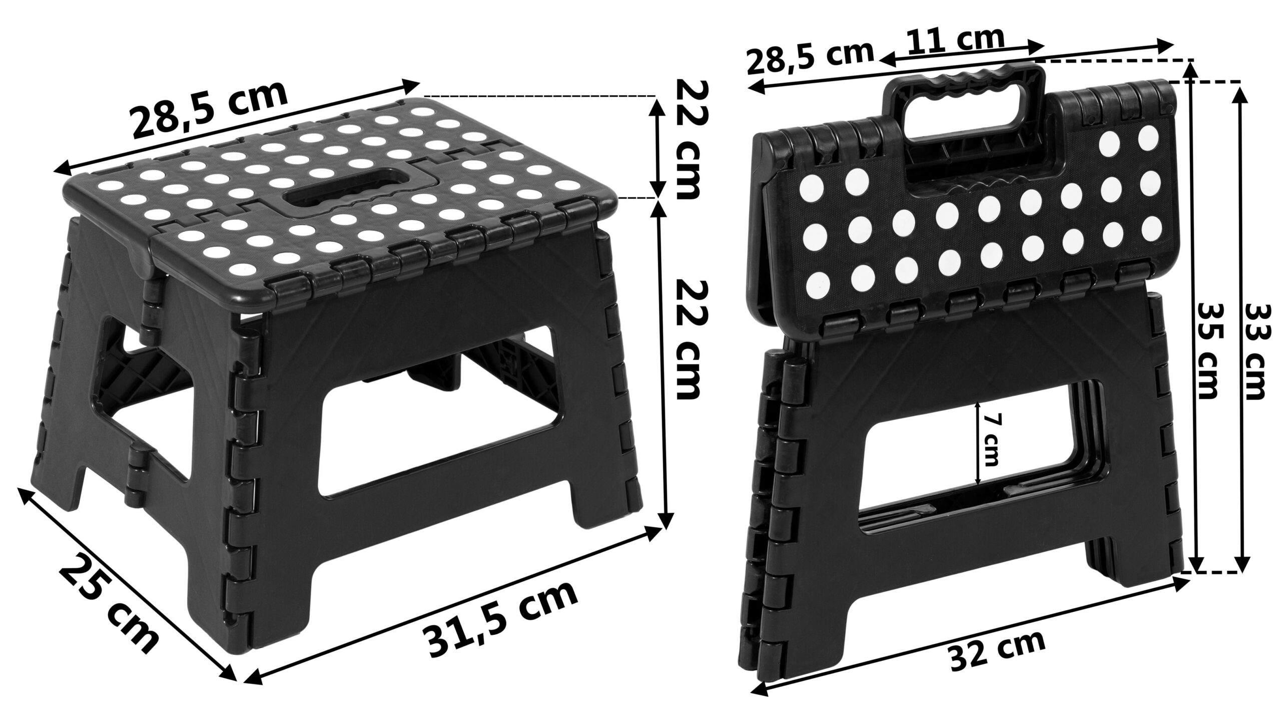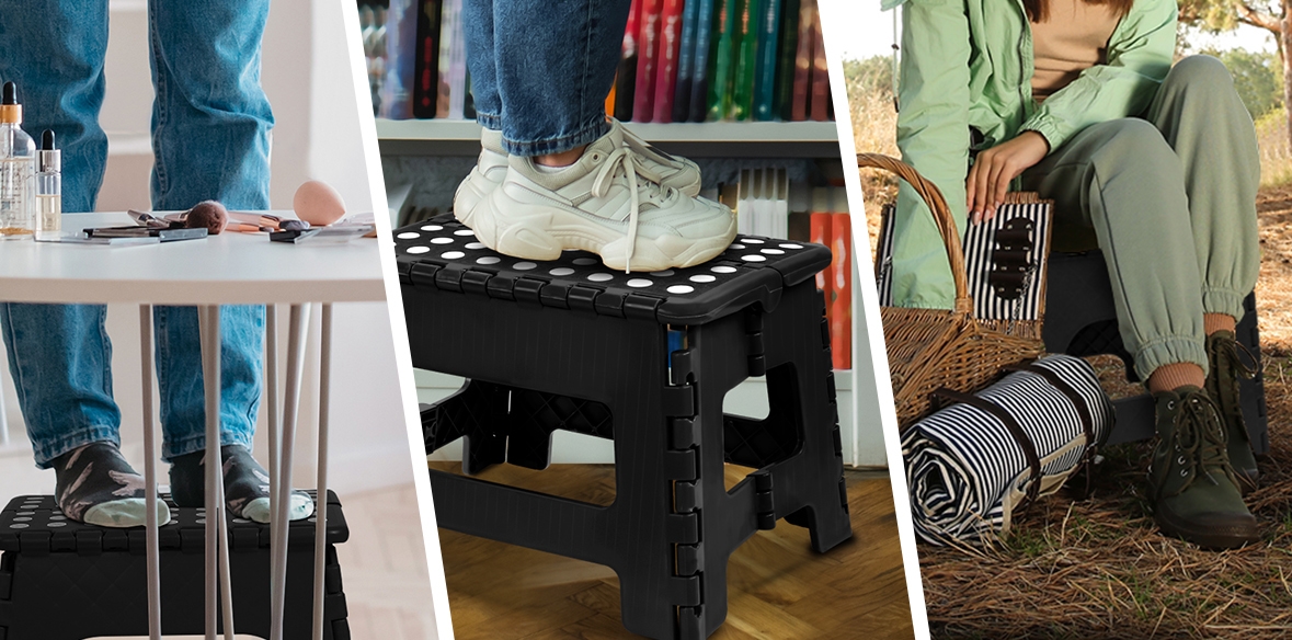 Stołek składany antypoślizgowy AMIGO CZARNY rozmiar M