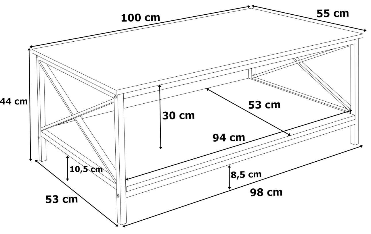 Herning to wyjątkowa ława kawowa, która połączenie funkcjonalność z designerskim wyglądem. Mebel ten został wykonany z najlepszych materiałów, dzięki czemu wyróżnia się solidną konstrukcją oraz atrakcyjnym designem. Herning doskonale sprawdzi się jako stolik kawowy w nowoczesnych salonach, a także w stylu industrialnym oraz loftowym. Mebel ten wyróżnia się dużą powierzchnią blatu oraz dodatkową dolną półką, która pozwala na przechowywanie akcesoriów.