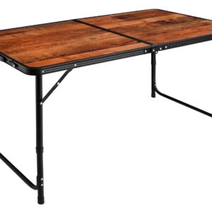 Kup teraz kempingowy stół turystyczny o nowowczesnym designie, z trzypoziomową regulacją wysokości. Stół składa się z aluminiowego stelaża oraz blatu z płyty MDF wysokiej jakości. Zastosowane materiały gwarantują niską wagę 4kg i dodatkowo łatwy transport. Stolik bardzo łatwo się rozkłada i składa do postaci walizki.