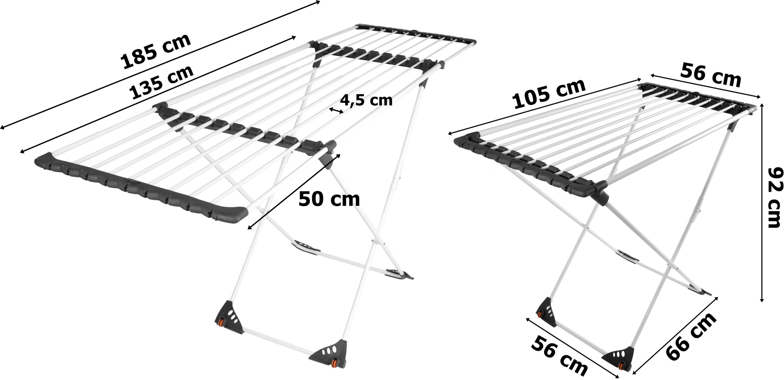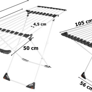 Jednym z kluczowych atutów suszarki Mojave jest jej inteligentna konstrukcja teleskopowa, pozwalająca na łatwe rozłożenie i dostosowanie szerokości w zakresie od 105 do 185 cm. Dzięki tej elastyczności dostosujesz suszarkę do swoich własnych potrzeb oraz ilości prania, co znacząco przyspieszy proces suszenia. Nasza suszarka została wyposażona w praktyczne kółka, co sprawia, że jej transport z miejsca na miejsce jest niezwykle proste i bezproblemowe. Nie musisz już wysilać się ciągnięciem ciężkiego sprzętu. Mojave to mobilność i wygoda w jednym!