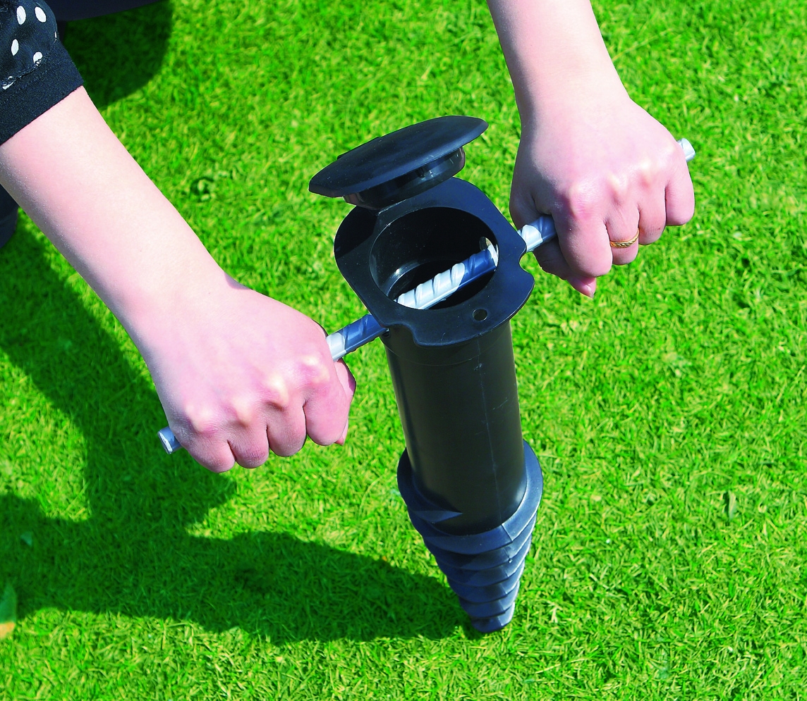 Montaż suszarki ogrodowej Gobi odbywa się za pomocą dołączonego świdra i klucza, co stanowi idealne rozwiązanie umożliwiające szybki montaż w dowolnym miejscu. Nie jest potrzebne żadne betonowanie – wystarczy wkręcić suszarkę w ziemię. Świder, będący częścią zestawu, jest na tyle duży i masywny, że bez problemu utrzyma suszarkę w stabilnej pozycji, co zapewnia bezpieczeństwo i trwałość użytkowania.
