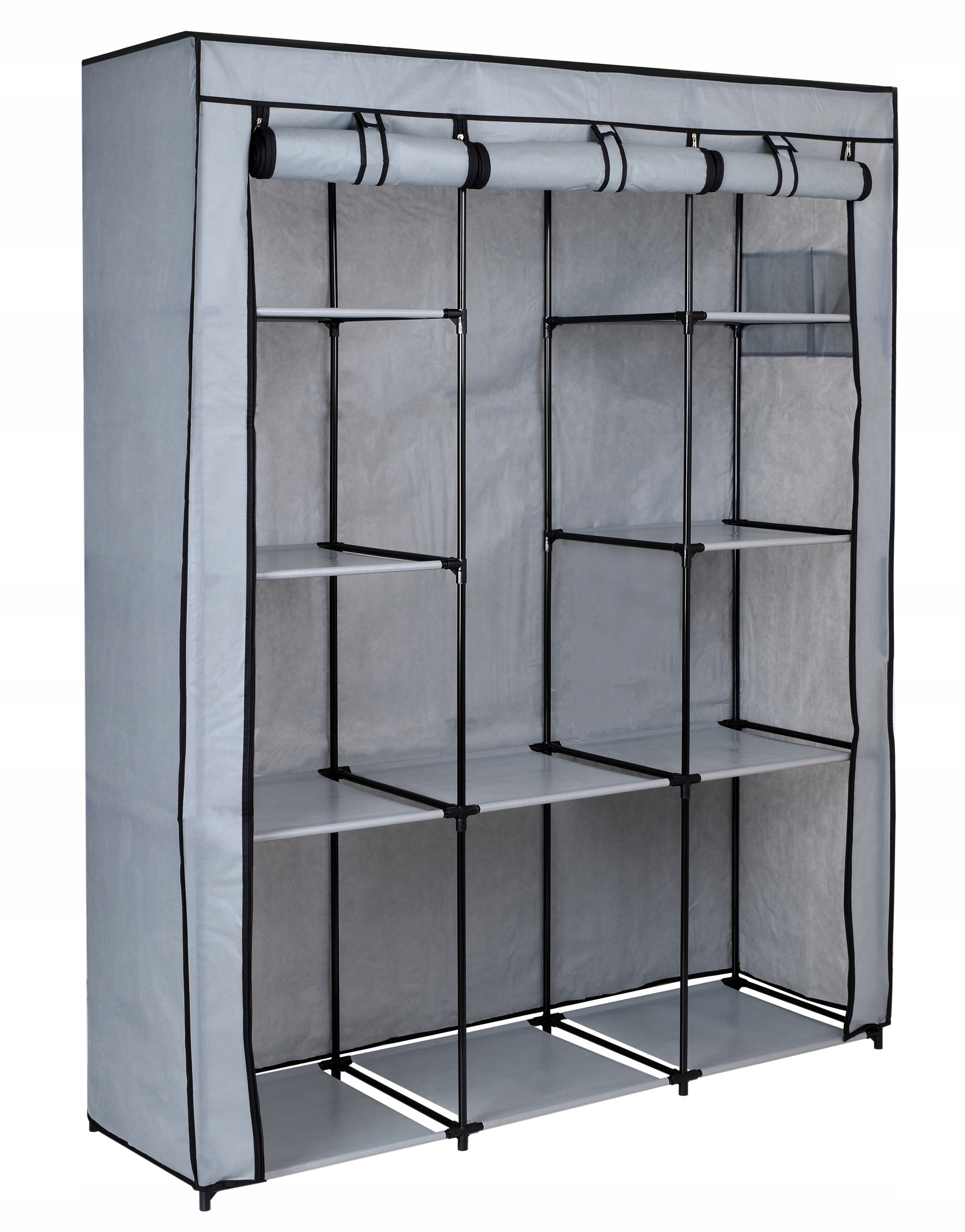 Lekkie szafy tekstylne to proste i ekonomiczne rozwiązanie problemu przechowywania odzieży. Szafy mają metalowy stelaż z łącznikami z tworzywa sztucznego, są proste i szybkie w montażu oraz dostępne w wielu modnych kolorach i wzorach. Materiałowa garderoba sprawdzi się też u osób często zmieniających miejsce zamieszkania – składa się ją w kilka minut. Dzięki zamkom błyskawicznym na froncie szafy, poszczególne części można otwierać i zamykać niezależnie.