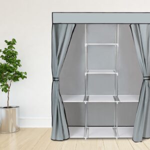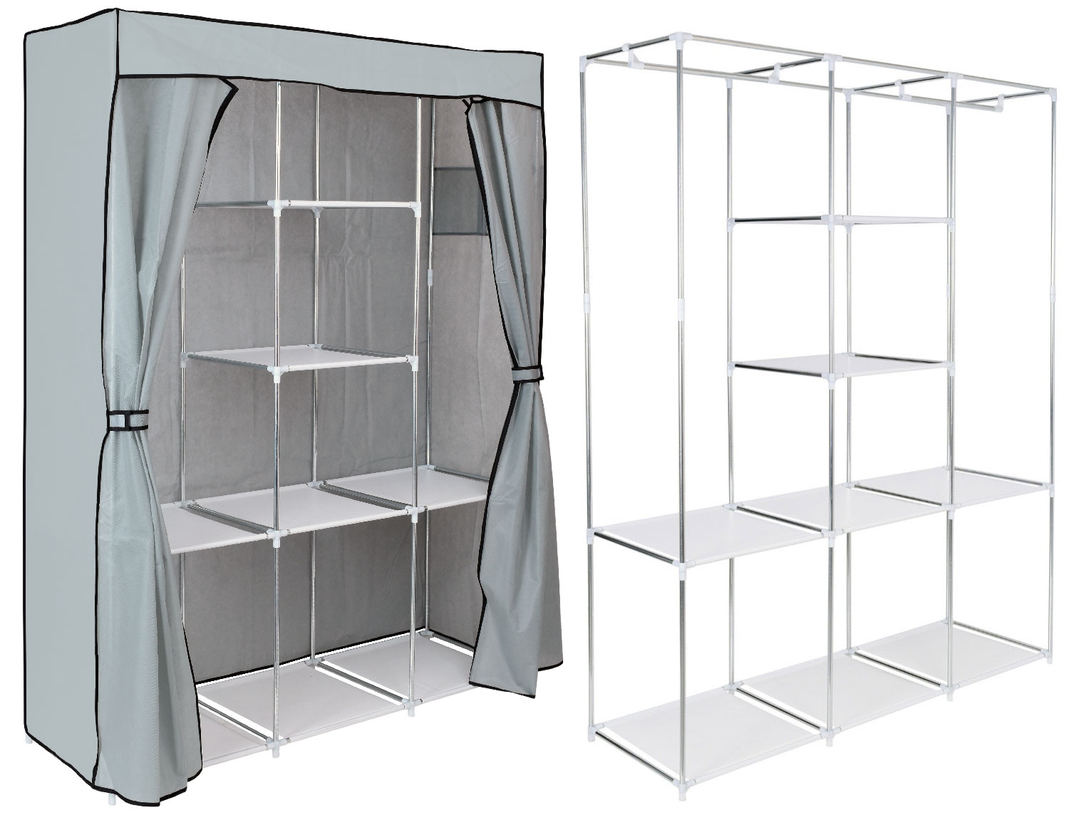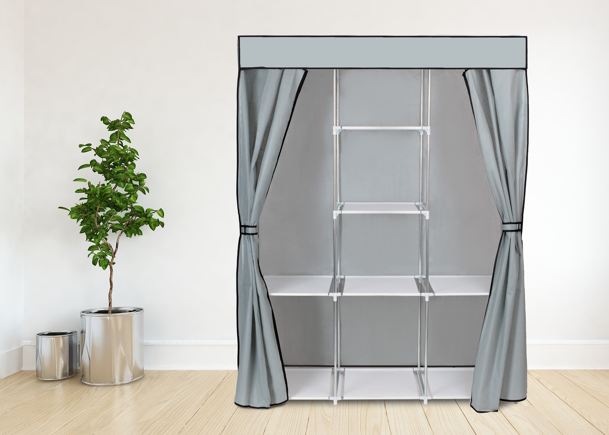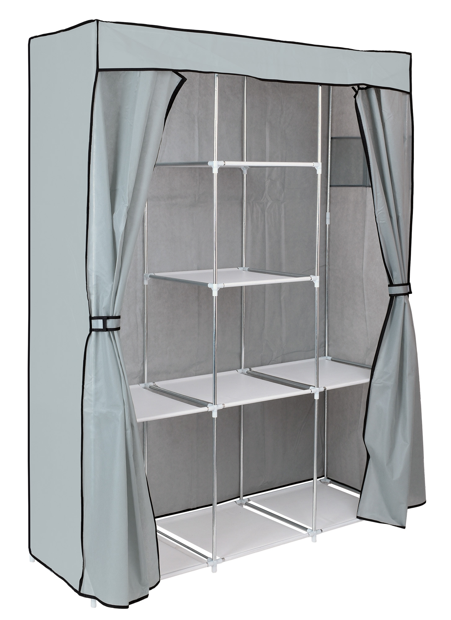 Szafa tekstylna z 8 półkami SONIA z kurtyną szara