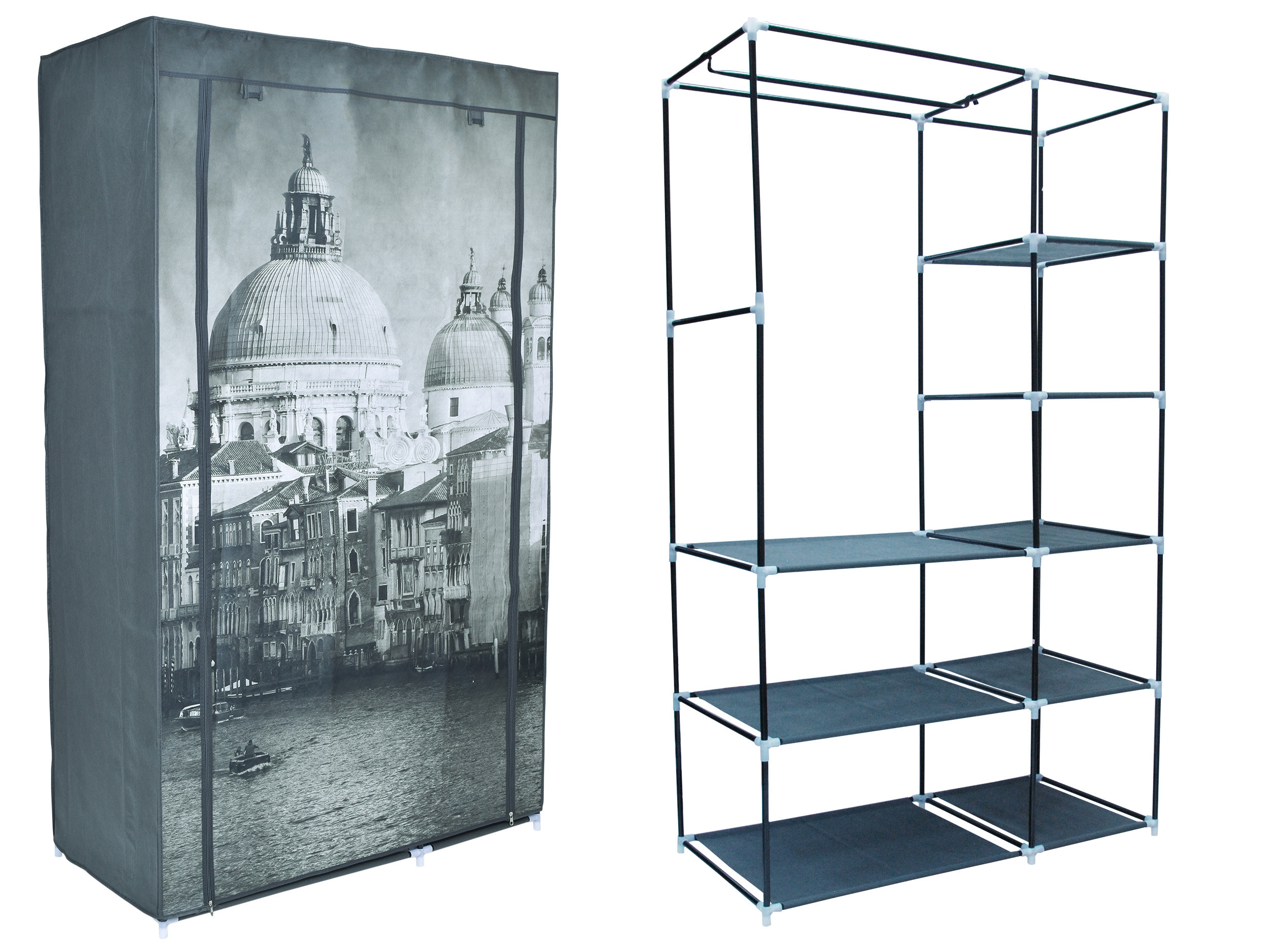 Lekkie szafy tekstylne to proste i ekonomiczne rozwiązanie problemu przechowywania odzieży. Szafy mają metalowy stelaż z łącznikami z tworzywa sztucznego, są proste i szybkie w montażu oraz dostępne w wielu modnych kolorach i wzorach. Materiałowa garderoba sprawdzi się też u osób często zmieniających miejsce zamieszkania – składa się ją w kilka minut. Dzięki zamkom błyskawicznym na froncie szafy, poszczególne części można otwierać i zamykać niezależnie.