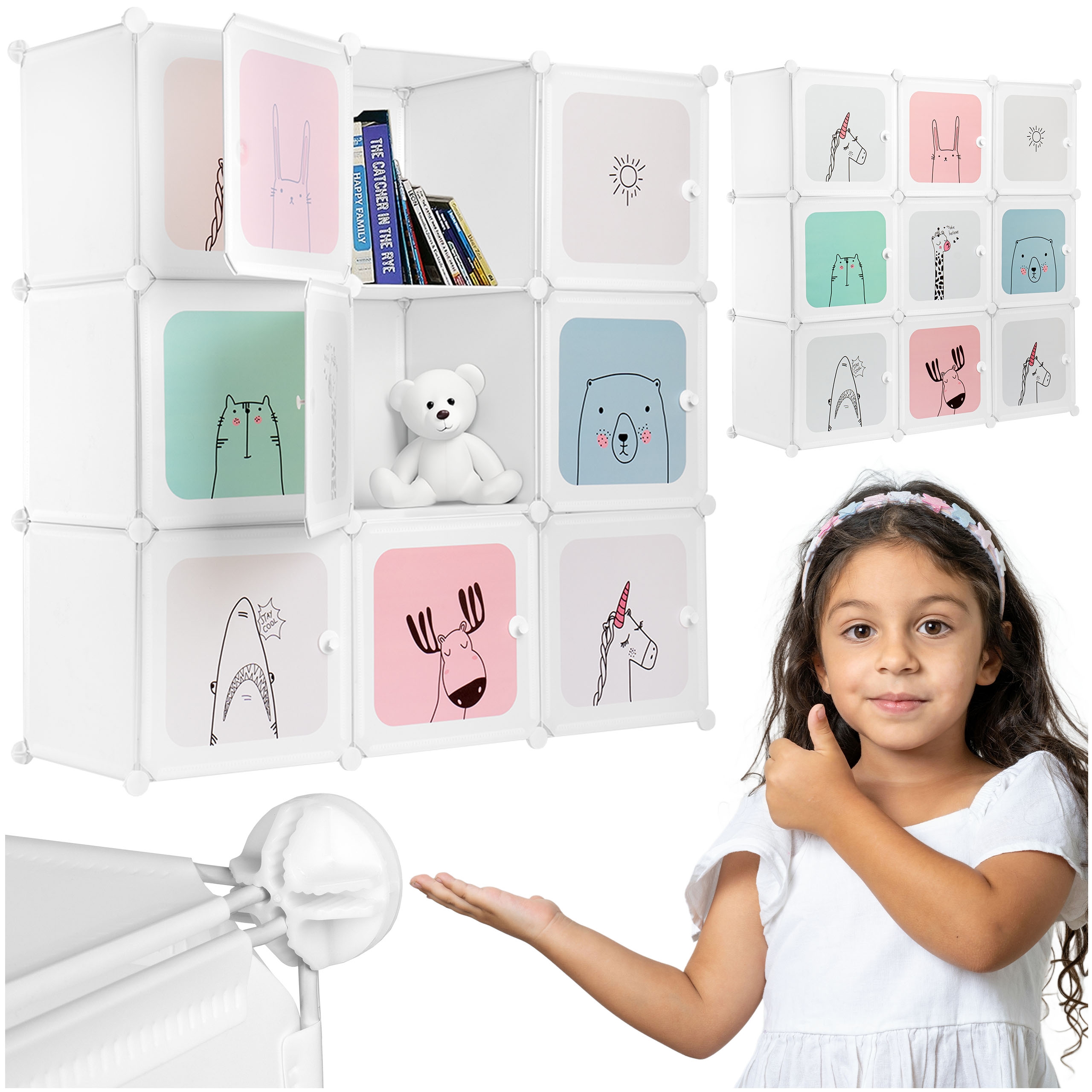 Odkryj funkcjonalną i estetyczną szafkę modułową ESLA, stworzoną z myślą o uporządkowaniu dziecięcego pokoju. Zawiera 9 modułów, które można swobodnie konfigurować, idealnie dopasowując do przestrzeni i potrzeb. Dzięki uroczym nadrukom ze zwierzątkami, szafka pasuje zarówno do pokoju chłopca, jak i dziewczynki.