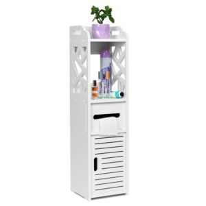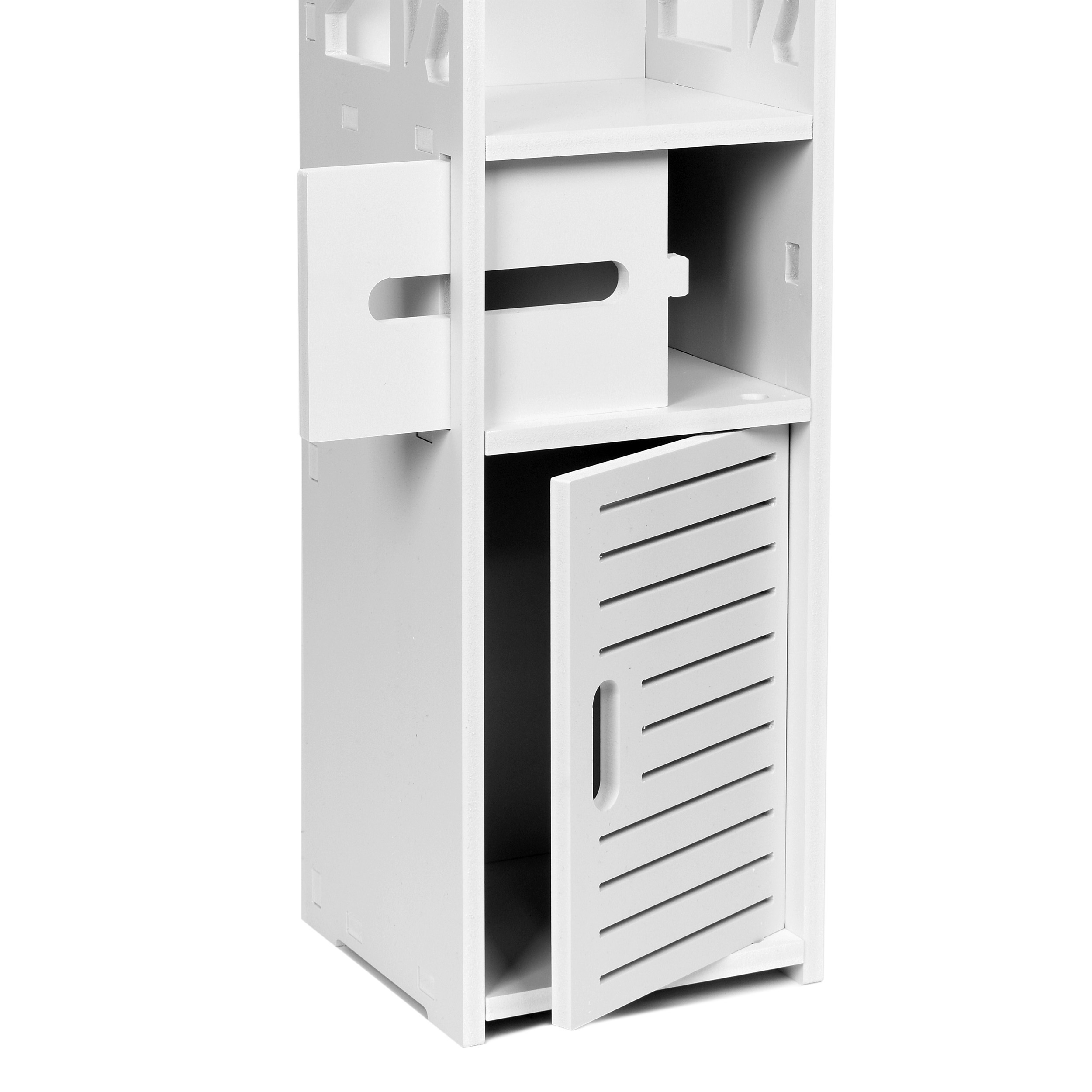 Szafka posiada schowek z drzwiami i półkami wyciętymi w odpowiednim rozmiarze, dzięki czemu można w niej przechowywać dodatkowy papier toaletowy i ręczniki. Dwupoziomowa konstrukcja z półkami zapewnia dodatkową przestrzeń do przechowywania,