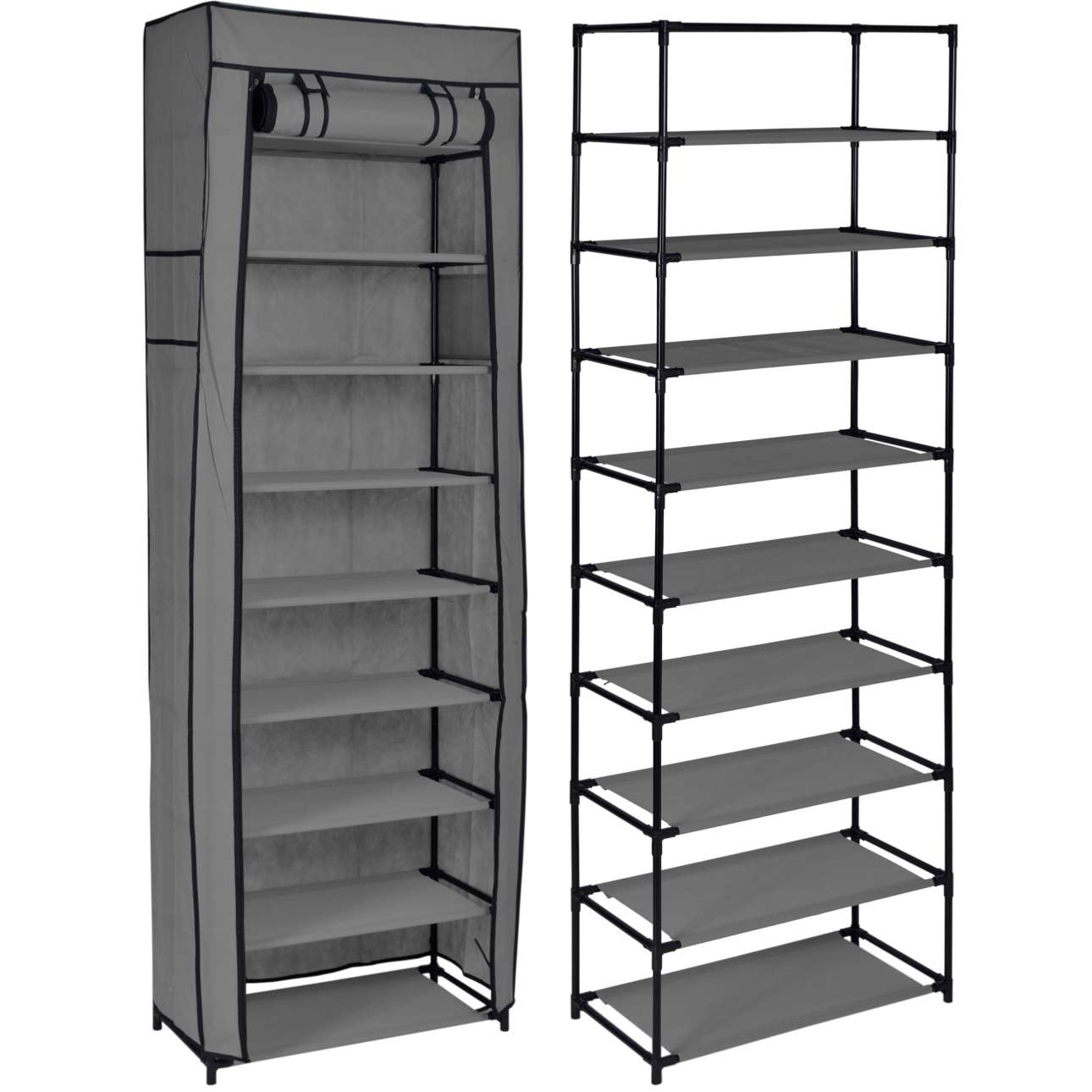 Szafka na buty zapewniająca trwałość i funkcjonalność dzięki stalowym ramom i oddychającemu materiałowi.