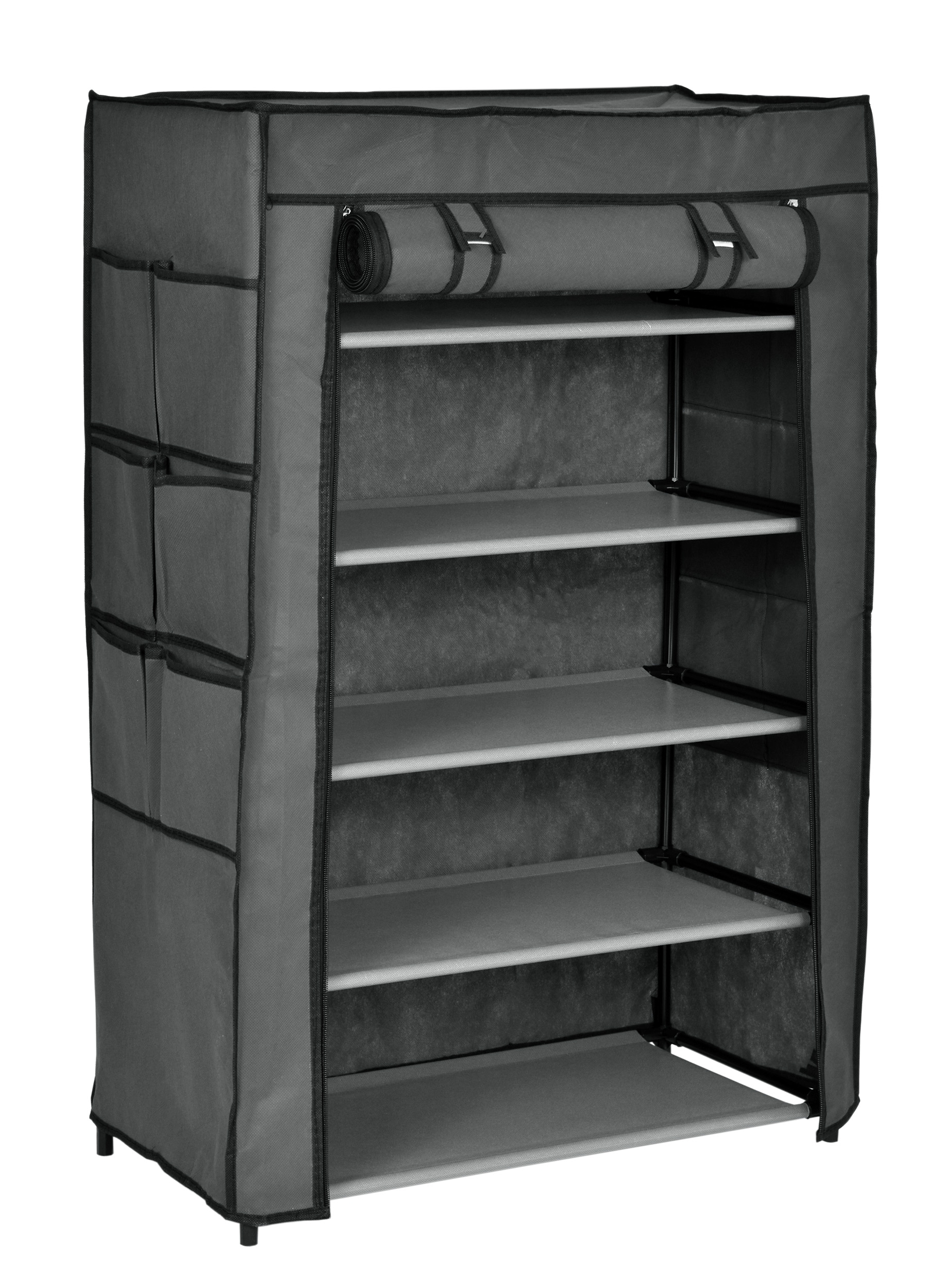 Półka, regał na buty wykonany ze stalowych ramek tworzących jej szkielet. Na stelaż nałożony jest oddychający dobrej jakości materiał. Jest łatwa do utrzymania czystości i praktyczna, półka idealnie nadaje się do przetrzymywania czapek, szalików, rękawiczek, butów lub innych drobnych rzeczy. Lekka i solidna konstrukcja w dowolnej chwili możesz ją złożyć, przewieść, przestawić.