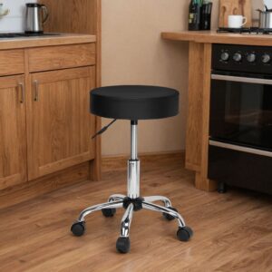 ✅ Regulacja wysokości za pomocą rączki: Dostosowanie wysokości stołka do różnych wysokości stołów lub blatów, co jest kluczowe dla komfortowej i ergonomicznej pracy.