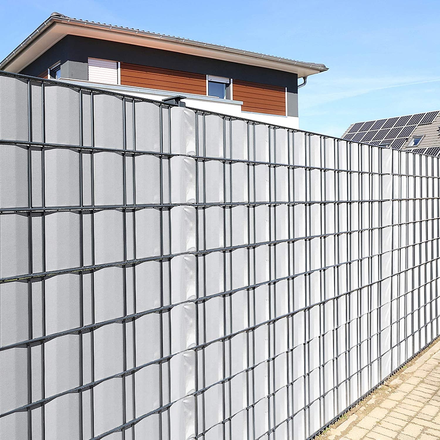 Nowoczesna taśma ogrodzeniowa to doskonałe rozwiązanie do stworzenia unikalnego i funkcjonalnego systemu ogrodzeniowego. Taśma została estetycznie wykonana z najwyższej jakości polichlorku winylu (PVC) o wysokiej gramaturze 450gsm, dzięki czemu jest wodoodporna, odporna na promieniowanie UV, odbarwianie kolorów oraz niskie i wysokie temperatury. Taśma chroni przed kurzem i silnym wiatrem. Jest łatwa do utrzymania w czystości, wystarczy spłukać ją wężem ogrodowym. Spełnia także funkcję maskującą, daję nam więcej prywatności, zasłaniając nas przed ciekawskimi sąsiadami. Montaż taśmy jest łatwy i zajmuje niewiele czasu.