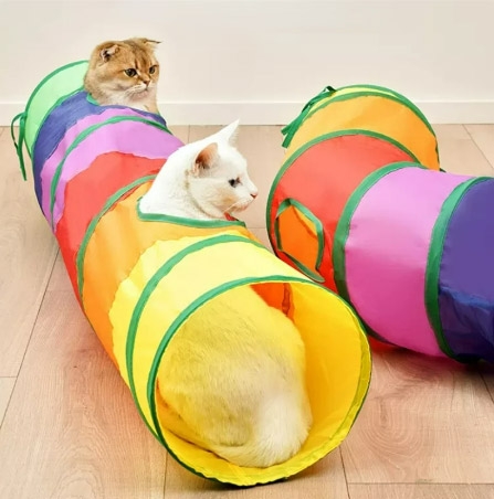 Dodatkową zaletą jest jego rozmiar – 120 cm nie zabiera dużo miejsca w domu a jednocześnie zapewnia schronienie i rozrywkę nawet kilku kotom jednocześnie. Tunel można łatwo złożyć na płasko i wygodnie transportować w każdej chwili. Zajmuje bardzo niewiele miejsca dzięki średnicy 25 cm, dlatego możesz go łatwo zabrać ze sobą, gdziekolwiek się udasz.