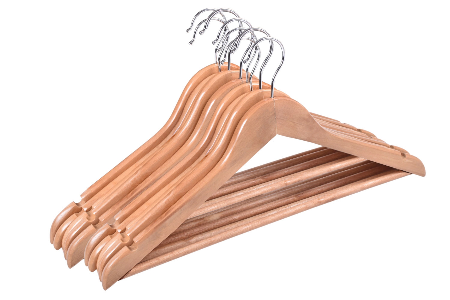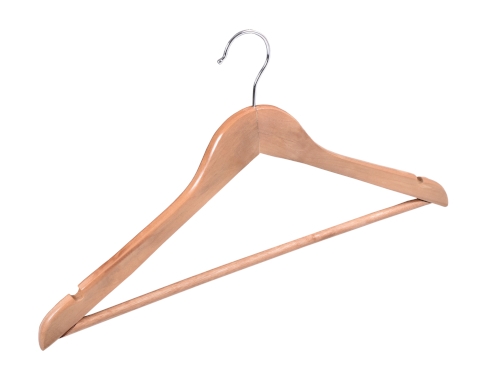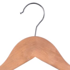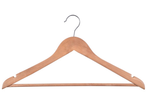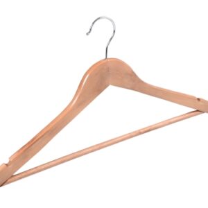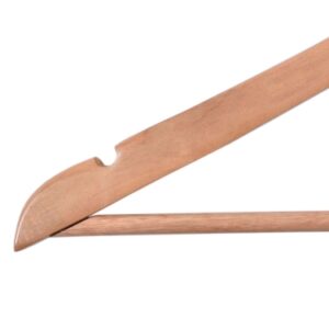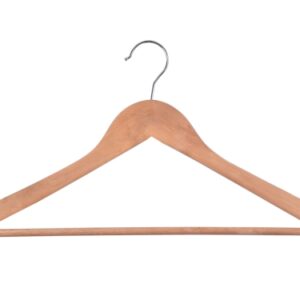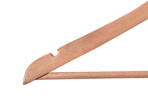 Wieszak Rondo wykonano z wysokiej jakości drewna. Został starannie wykończony i zabezpieczony farbą, dzięki czemu będzie doskonale prezentował się także w eleganckich butikach z luksusową odzieżą. W domowym zaciszu zadba o to, by Twoje ubrania nie zsuwały się, posiada bowiem specjalne wcięcia na ramionach. Dodatkowa poprzeczka pozwoli zawiesić dodatkowe elementy garderoby i zapobiegnie ich zagnieceniu. Hak wieszaka wykonano ze stali nierdzewnej, co znacząco wyróżnia go pod względem trwałości na tle konkurencji.