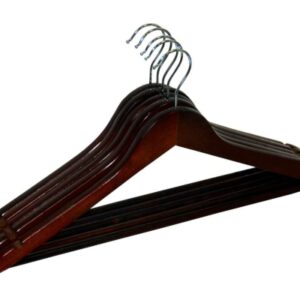 Wieszak Rondo wykonano z wysokiej jakości drewna. Został starannie wykończony i zabezpieczony farbą, dzięki czemu będzie doskonale prezentował się także w eleganckich butikach z luksusową odzieżą. W domowym zaciszu zadba o to, by Twoje ubrania nie zsuwały się, posiada bowiem specjalne wcięcia na ramionach. Dodatkowa poprzeczka pozwoli zawiesić dodatkowe elementy garderoby i zapobiegnie ich zagnieceniu. Hak wieszaka wykonano ze stali nierdzewnej, co znacząco wyróżnia go pod względem trwałości na tle konkurencji.