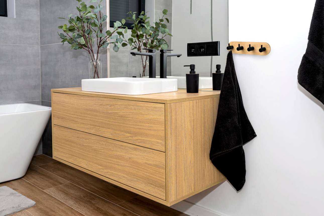 Przeznaczenie: biuro, łazienka | Kolory: czarny mat, naturalny bambus