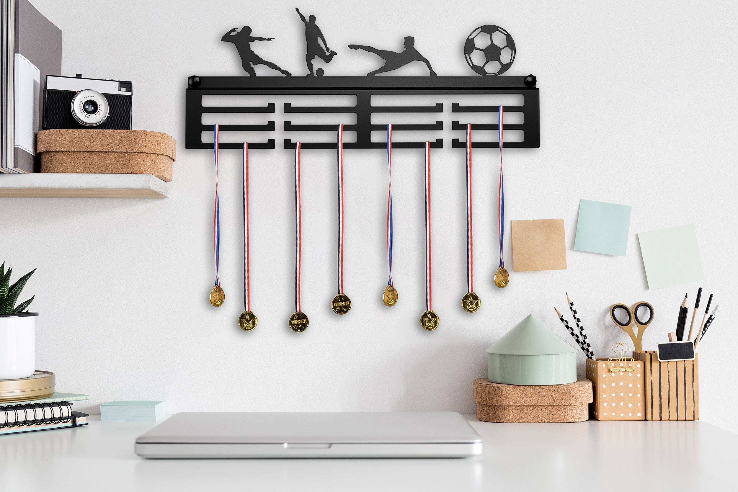 Wieszak na medale to stylowy i praktyczny element dekoracyjny, must have na liście każdego, kto trenuje. Wycięty precyzyjną technologią laserową. Całość została dwustronnie polakierowana, dzięki czemu wieszak jest odporny na zadrapania.