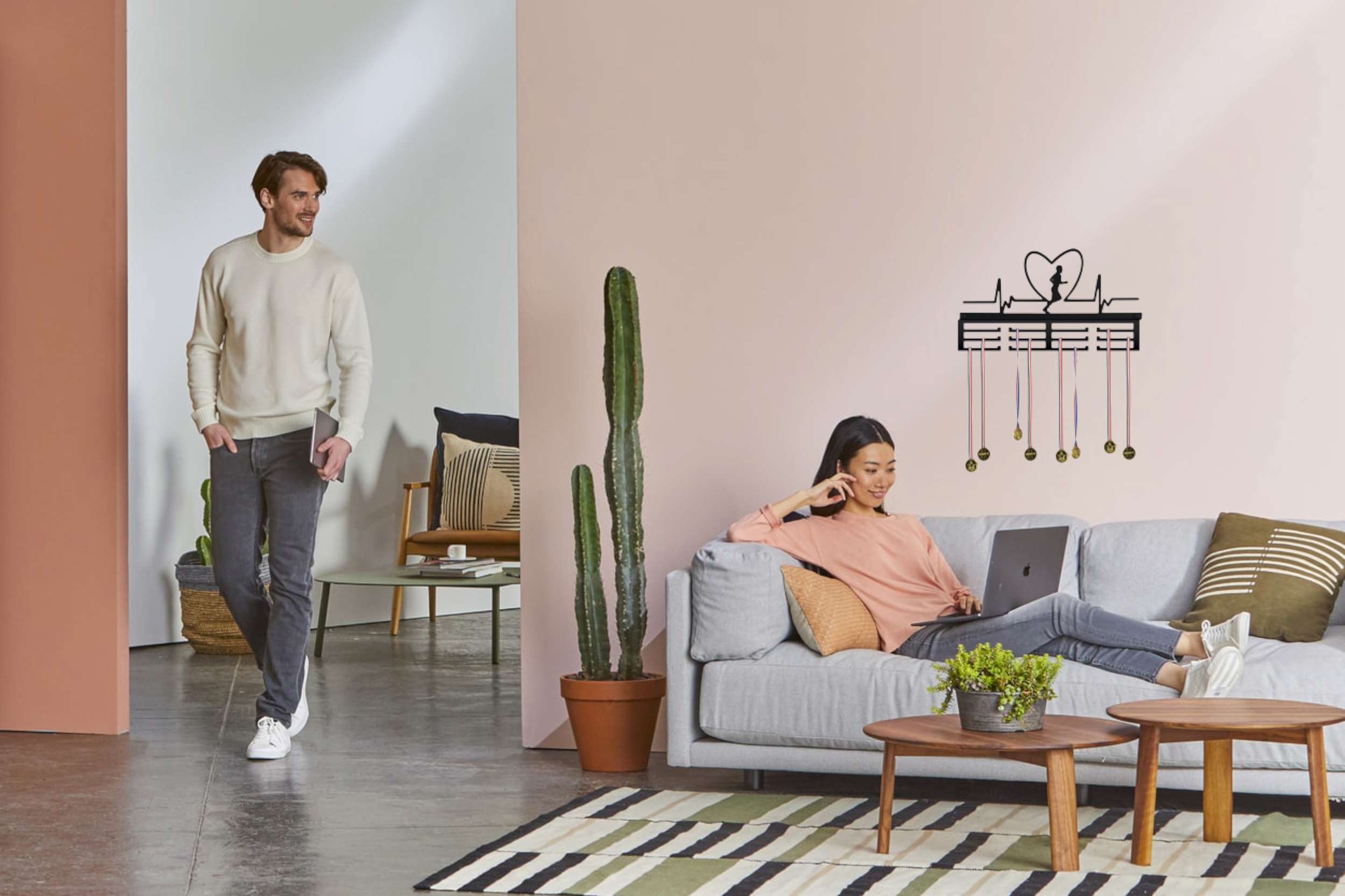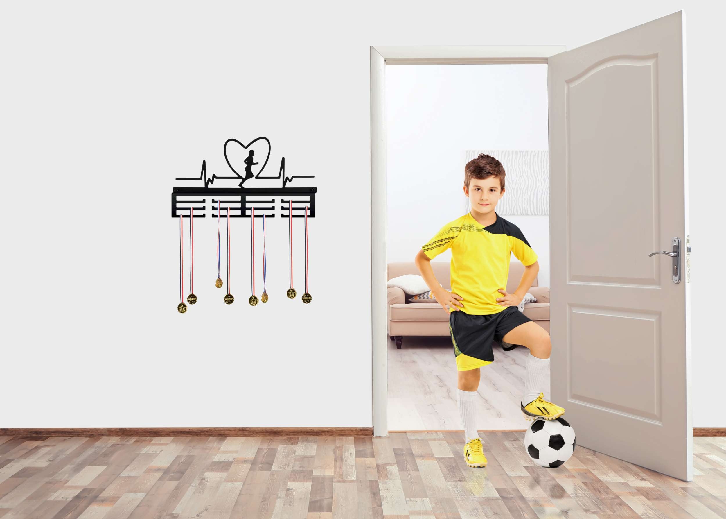 Doskonały pomysł na prezent. Wieszak na medale to najmodniejszy gadżet do pokoju zarówno dzieci jak i dorosłych! Bardzo estetycznie wykonany, literki wycinane sa bowiem laserowo. Metalową konstrukcję zabezpieczono proszkowo matowym lakierem w czarnym kolorze. Dwanaście uchwytów pomieści od sześćdziesięciu do stu medali.