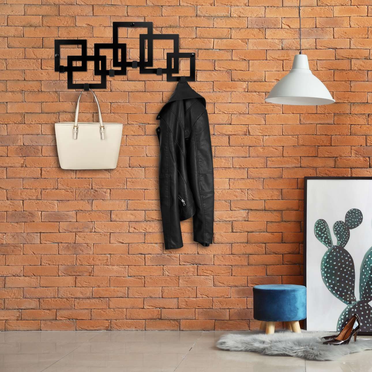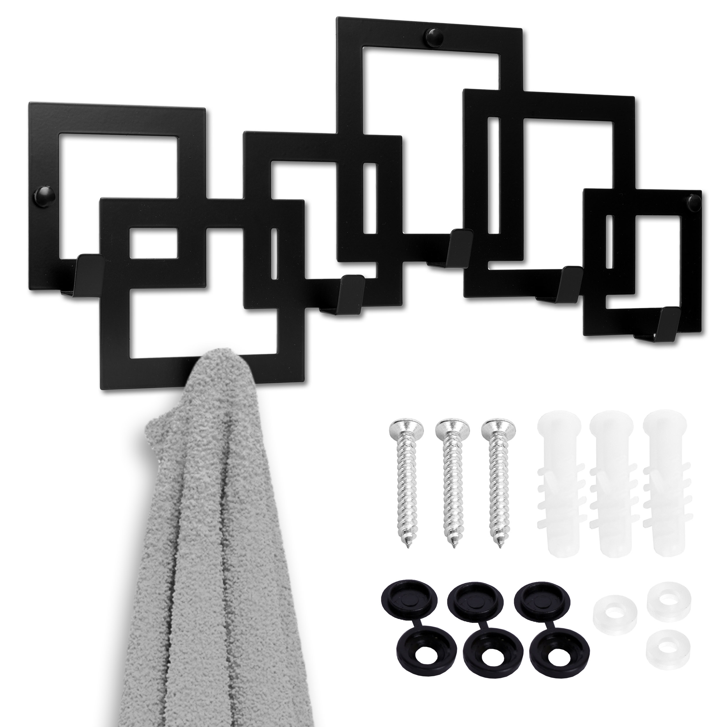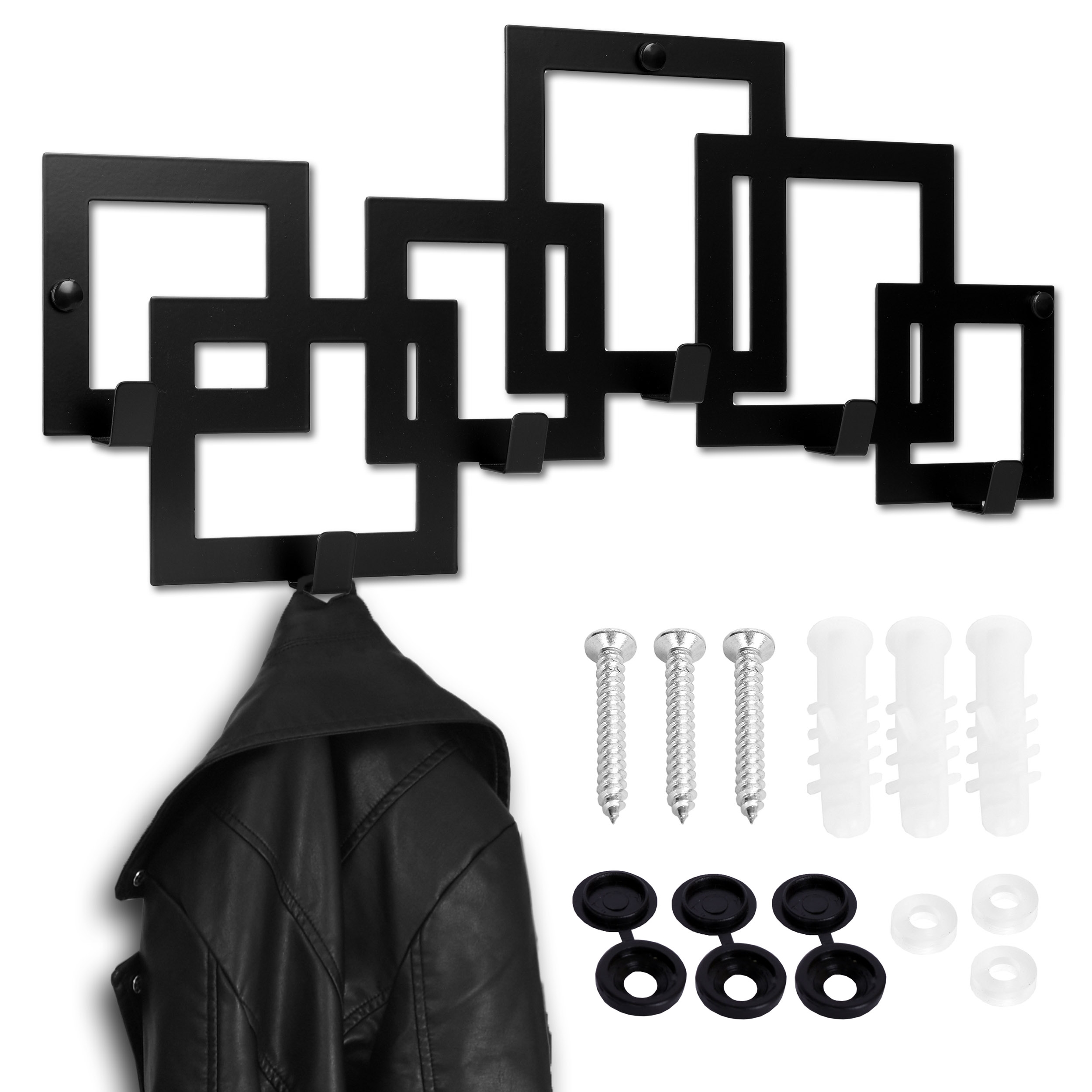 Wieszak z haczykami Kardus to idealne rozwiązanie do każdego pomieszczenia. Doskonale spełni klasyczną funkcję wieszaka do przedpokoju na ubrania, kurtki, klucze czy wieszaka łazienkowego na ręczniki. Model wykonano z najwyższej jakości stali malowanej proszkowo z wykończeniem matowym na czarny kolor. Wysoka jakość materiałów zapewnia jego trwałość i wytrzymałość, a czarny kolor nadaje mu elegancji i loftowego charakteru. Wieszak Kardus z haczykami to świetny wybór dla osób, które cenią sobie funkcjonalność i nowoczesny design. Wieszak został nowocześnie zaprojektowany z dbałością o najmniejsze szczegóły. Jest estetycznie wykonany, ma gładkie i zaokrąglone krawędzie. Model to ciekawa kombinacja geometrycznych wzorów, która dzięki swojej uniwersalnej stylistyce będzie pasowała do każdego wnętrza. Wieszak z haczykami Kardus to solidny i designersko zaprojektowany wieszak, który spełni wszystkie Twoje oczekiwania. Pasuje do stylu loftowego, industrialnego, klasycznego i nowoczesnego.