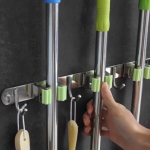 Wieszak z rolkami i haczykami na narzędzia, grabie, mopy