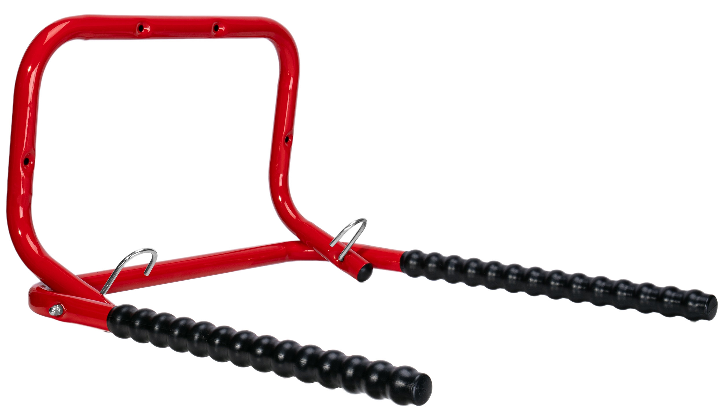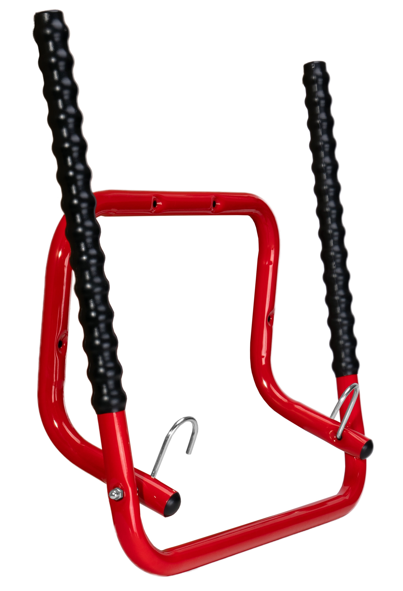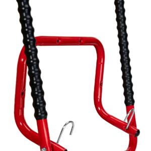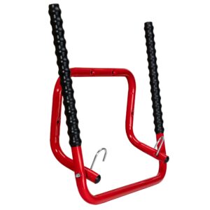 Wykonany z wytrzymałej stali malowanej proszkowo i wyposażony w karbowane ramiona z tworzywa, gwarantuje bezpieczeństwo i stabilność dla Twojego roweru.