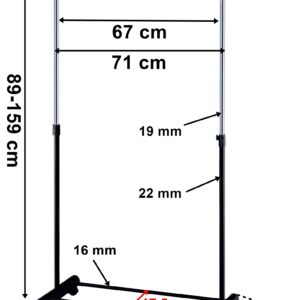 Uniwersalna, mobilna garderoba na kółkach. Lekka, praktyczna, rozkładana na wielu płaszczyznach. Pozwala zawiesić ogromną ilosć wieszaków i zaprowadzić porządek w garderobie. Nieodłączny element każdego butiku czy domowej garderoby. Często używana także w stiudiu fotograficznym czy projektowym. Posiada regulację wysokości oraz kółka, umozliwiające łatwe przemieszczanie wieszaka. Do tego wieszak zakończony jest specjalnymi ramionami, zapobiegającymi zsuwaniu się ubrań.